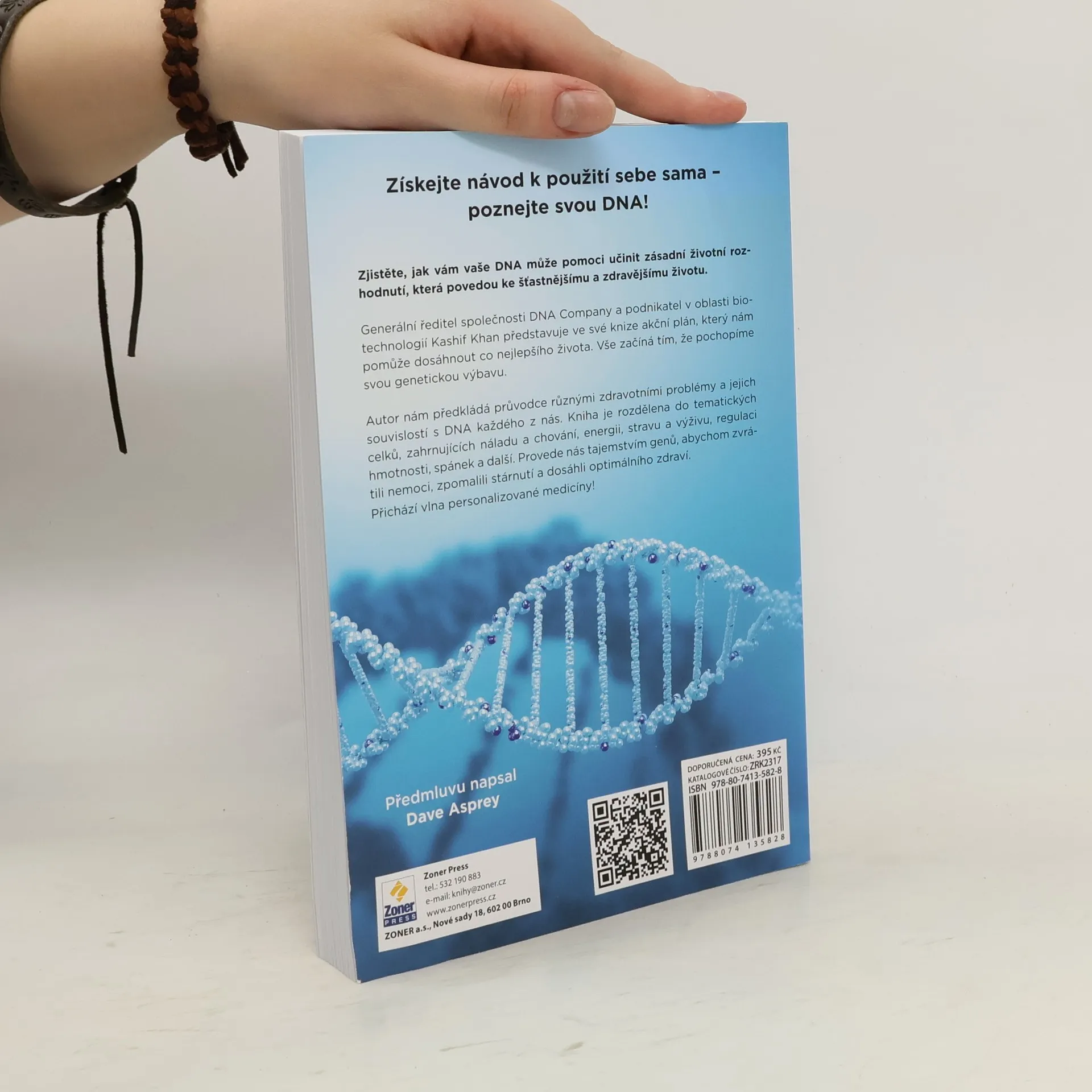 Naučte se, jak získat návod k použití sebe sama! Znalost vašeho genomu vám může pomoci učinit zásadní rozhodnutí, která povedou k šťastnějšímu a zdravějšímu životu. Přichází vlna personalizované medicíny! Kashif Khan, podnikatel v oblasti biotechnologií, představuje akční plán pro dosažení co nejlepšího života. Vše začíná pochopením vaší genetické výbavy, neboť zdravotní problémy často souvisejí s naší specifickou DNA. Autor se v kapitolách zaměřuje na témata jako nálada, energie, strava, regulace hmotnosti, spánek a stárnutí, a hledá odpovědi na otázky, které si klademe s přibývajícím věkem. Proč se mi nedaří dosáhnout vyrýsovaných svalů, když cvičím stejně jako můj kolega? Jak spánek ovlivňuje mou náchylnost k nemocem? Mohou moje děti žít zdravěji a déle než já? Kashif Khan sdílí svou osobní cestu k překonání genetického dědictví a otevřeně popisuje své zdravotní problémy. V knize najdete užitečná doporučení pro zdravější život – jaké potraviny jíst, jak cvičit a jak optimalizovat výkonnost, abyste předcházeli nemocem a zpomalili proces stárnutí.