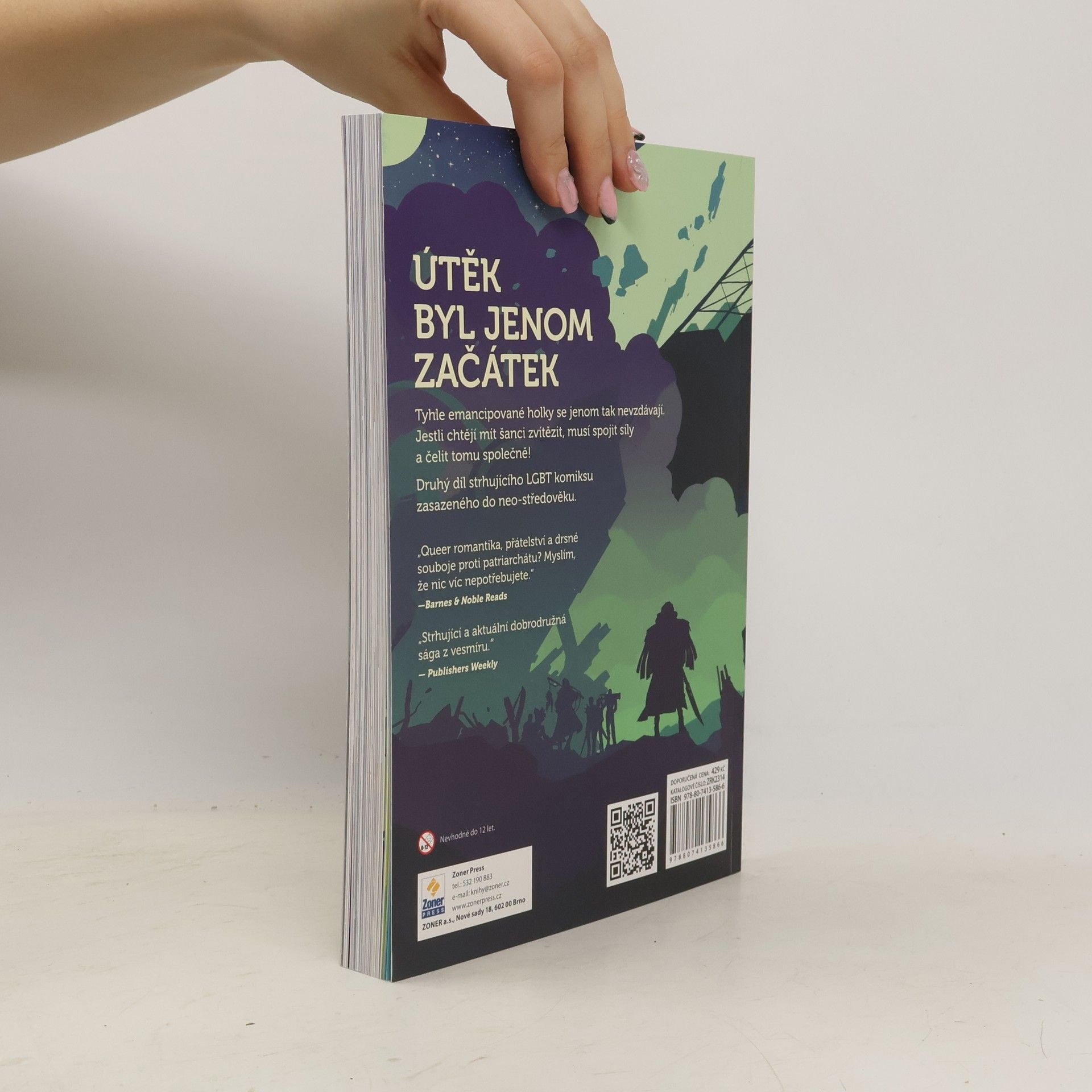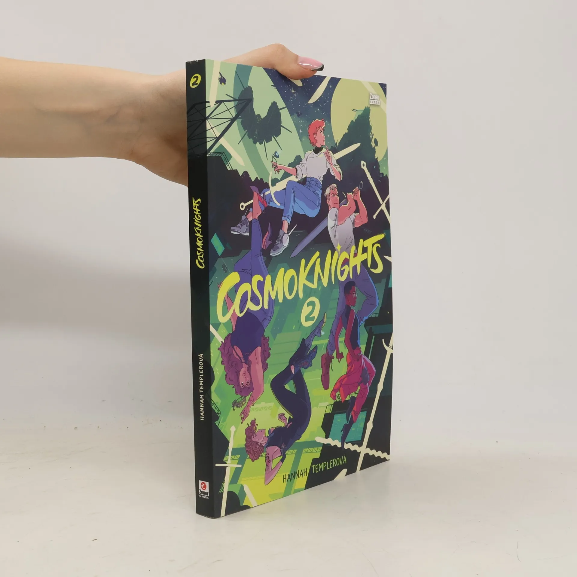 Útěk byl jenom začátek! Tyto emancipované holky se nevzdávají. Aby měly šanci zvítězit, musí spojit síly a čelit patriarchátu společně. Po úspěšném zachránění princezny Scottie se tým snaží dostat ji do bezpečí, ale co když Scottie o nový život nestojí? Členky posádky mají sice stejné cíle, ale jejich představy o dosažení těchto cílů se liší. Cass chce pokračovat v turnajích, Kate by ráda rozpoutala revoluci, a Pan se nemůže zbavit myšlenek na Taru a její vzkaz. Co když je Tara stále venku a bojí se, že ji Pan opustila? Pokračování barevného komiksu zasazeného do neo-středověku sleduje sympatické emancipované dívky, které se snaží změnit svět k lepšímu, zatímco se učí fungovat mezi sebou. Na své vesmírné dobrodružství budou muset čelit nebezpečným pirátkám i svým vnitřním démonům. Autorkou je Hannah Templerová, americká kreslířka známá svým oceňovaným komiksem. Pracuje také jako výtvarnice a ilustrátorka pro známé tituly a je spolutvůrkyní uznávaného grafického románu. Hannah žije se svým psem Thistlem a kočkou Super Mario a ráda hraje dračák.