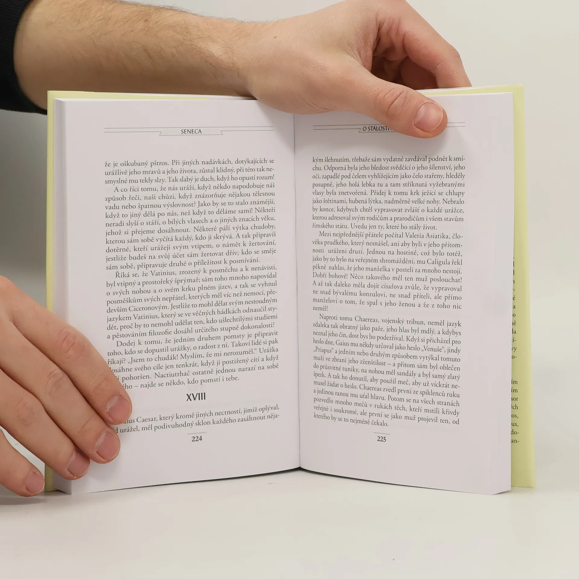 Čtvrtý svazek Senecových filozofických textů dovršuje edici jeho prozaického díla v českých překladech vydaných v Antické knihovně (AK 4; AK 51;). Dominantou tohoto závěrečného svazku je proslulá konsolace čili útěcha O duševním klidu. Její téma v dílčích pohledech doplňuje sedmero dalších úvah. Kuriózním dodatkem je často samostatně vydávaná satira Apokolokyntóza, zesměšňující zbožštění císaře Claudia. Pikantní tečkou je soubor 73 epigramů, v nichž vyniká Senekův břitký ostrovtip a pozorovací schopnost. Seneca vždy patřil a stále patří k nejznámějším a nejoblíbenějším římským autorům. Jeho filozofické spisy, úvahy a konsolace čili útěchy byly hojně čteny pro naléhavý etický obsah a srozumitelnost. Hledá cesty k mravní odpovědnosti cti, vnitřní svobodě a duševní vyrovnanosti, uvažuje o smrti a o přátelství a jeho prospěšnosti a potřebnosti, chválí odpoutání od materiálních potřeb, prosazuje myšlenku o rovnosti všech lidí apod. Je to filozofie praktického života a lze z ní vyčíst mnoho autorových vlastních zkušeností ze vzrušené doby, kterou prožíval. Obsahuje: Apokolokyntóza Epigramy O blaženém životě O duševním klidu O hněvu O krátkosti života O laskavosti O prozřetelnosti O stálosti mudrce O volném čase