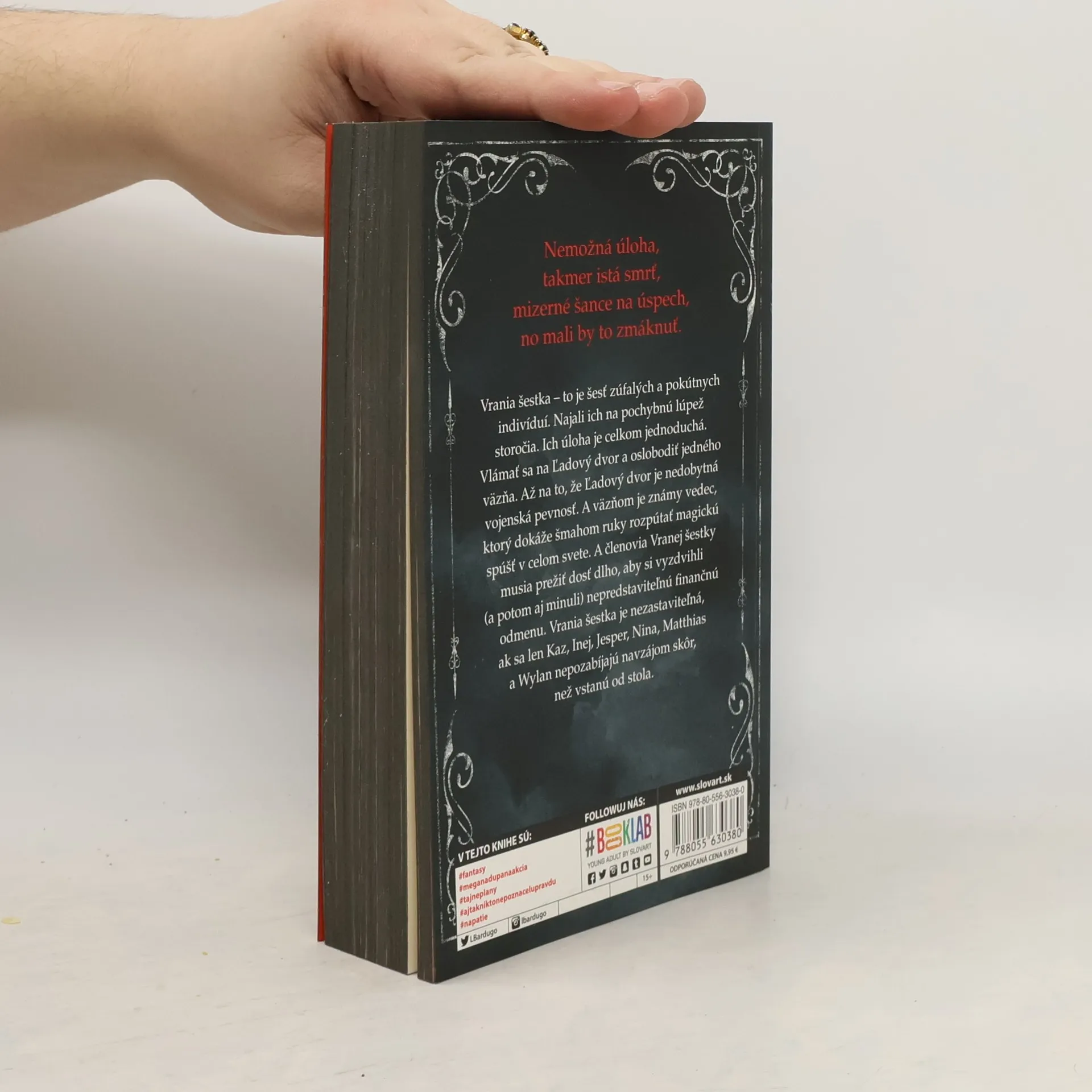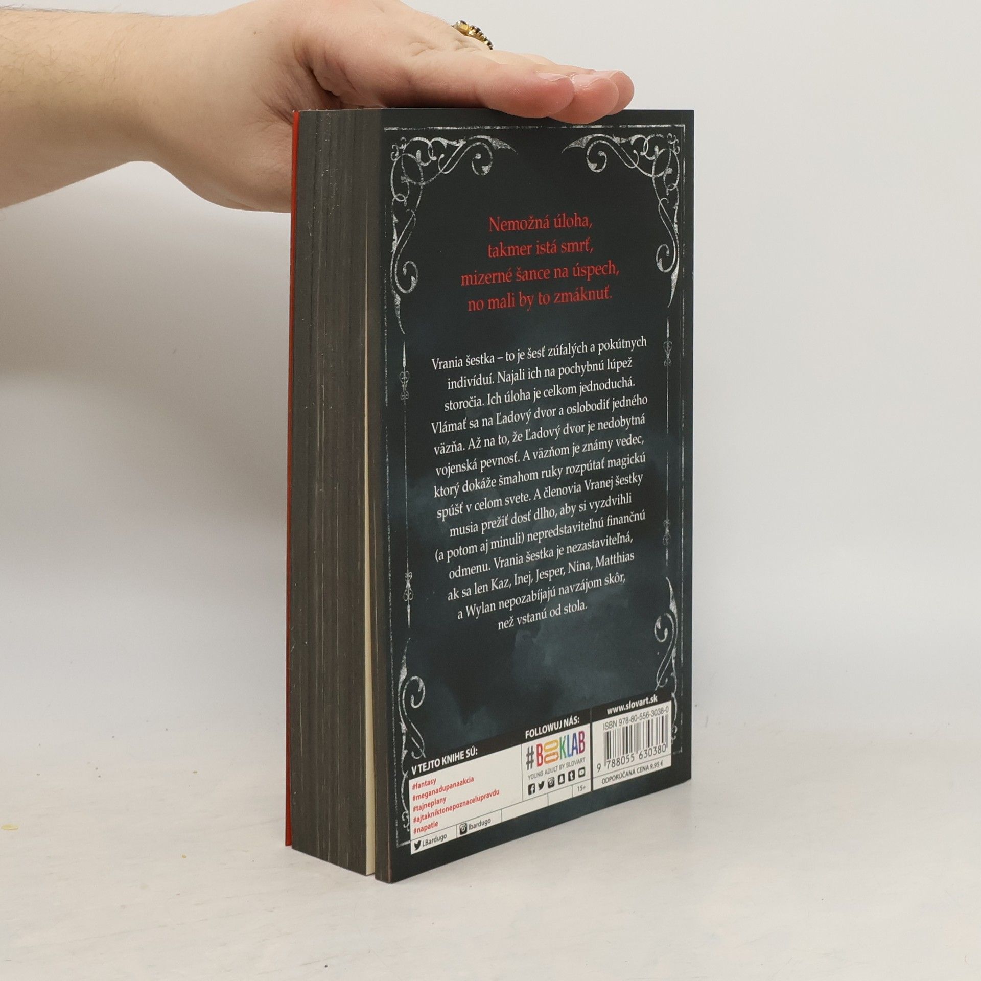 Šesť nebezpečných vyvrheľov. Jedna neuskutočniteľná úloha. Vrania šestka – to je šesť zúfalých a pokútnych indivíduí: trestanec (čo prahne po pomste), ostrostrelec (ktorý neodolá žiadnej stávke), zbeh (čo zutekal pred životom v luxuse jednej z najbohatších rodín), špiónka (známa ako Prízrak), lámačka (čo sa pretĺka spodinou sveta pomocou mágie) a zlodej (s darom vyviaznuť živý zovšadiaľ). Najali ich na pochybnú lúpež storočia. Ich úloha je celkom jednoduchá. Vlámať sa na Ľadový dvor a oslobodiť jedného väzňa. Až na to, že Ľadový dvor je nedobytná vojenská pevnosť, ktorú zatiaľ nikto, ale naozaj nikto nezdolal. Väzňom je známy vedec, ktorý dokáže šmahom ruky rozpútať magickú spúšť v celom známom svete. A členovia Vranej šestky musia prežiť dosť dlho, aby si vyzdvihli (a potom aj minuli) svoju nepredstaviteľnú finančnú odmenu. Vrania šestka je nezastaviteľná, ak sa len Kaz, Inej, Jesper, Nina, Matthias a Wylan nepozabíjajú navzájom skôr, než vstanú od stola. http://www.uniknihy.sk/produkt/vrania-sestka/