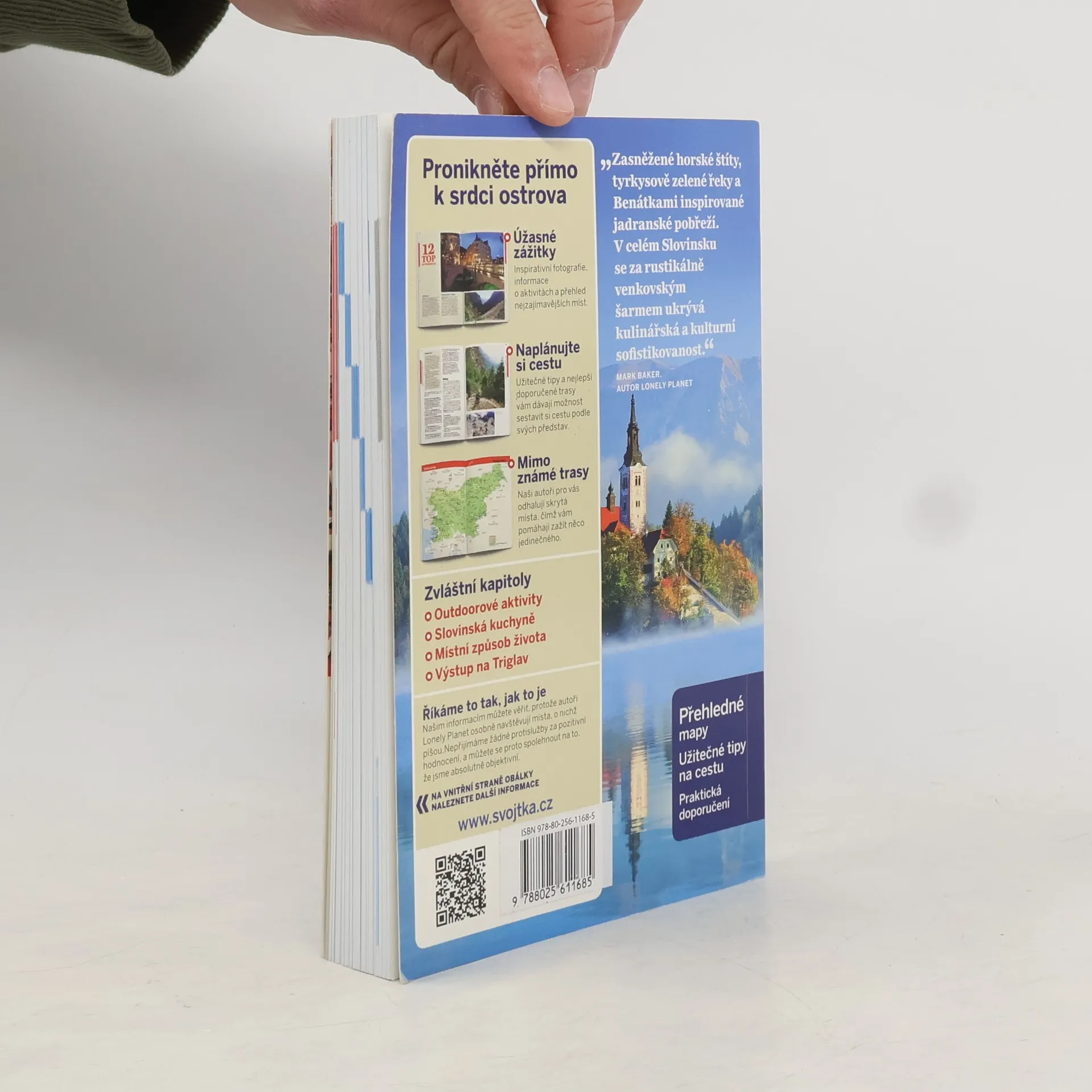 Zasněžené horské štíty, tyrkysově zelené řeky a Benátkami inspirované jadranské pobřeží. V celém Slovinsku se za rustikálně venkovským šarmem ukrývá kulinářská a kulturní sofistikovanost. Autoři: Mark Baker -hlavní koordinátor a autor kapitol „Plánujeme cestu“, „Lublaň“, „Gorenjska“. Paul Clammer -kapitoly „Primorska a Notranjska“, „Dolenjska a Bela Krajina“, „Štajerska a Koroška“, „Prekmurje“, „Praktické informace A-Z“, „Doprava“. Steve Fallon - kapitola „Jak porozumět Slovinsku“. Přeloženo z anglického vydání Lonely Planet „Slovenia“ 7th Edition - May 2013. Překlad Daniela Orlando, Dana Štursová. První české vydání.
