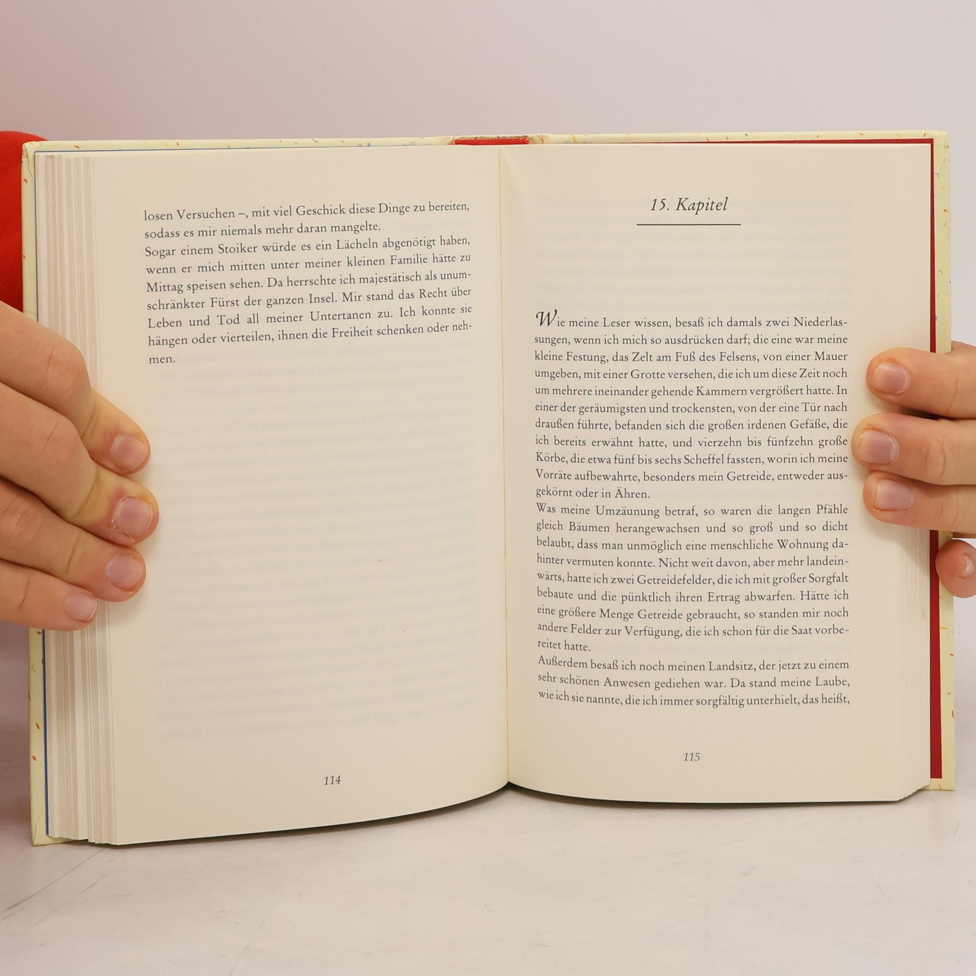 »Das Leben und die seltsamen Abenteuer des Robinson Crusoe, eines Seemanns aus York. Welcher achtundzwanzig Jahre ganz allein auf einer unbewohnten Insel vor der amerikanischen Küste, nahe der Mündung des großen Orinoco lebte, wohin er nach einem Schiffbruch, bei dem die ganze Besatzung außer ihm selbst ums Leben kam, verschlagen wurde. Nebst dem Bericht wie er auf wundersame Weise durch Piraten gerettet wurde. Geschrieben von ihm selbst.« So lautet der volle Titel des Buches, dessen wichtigste Begebenheiten hier in Auswahl dargeboten werden. Gekürzte Ausgabe