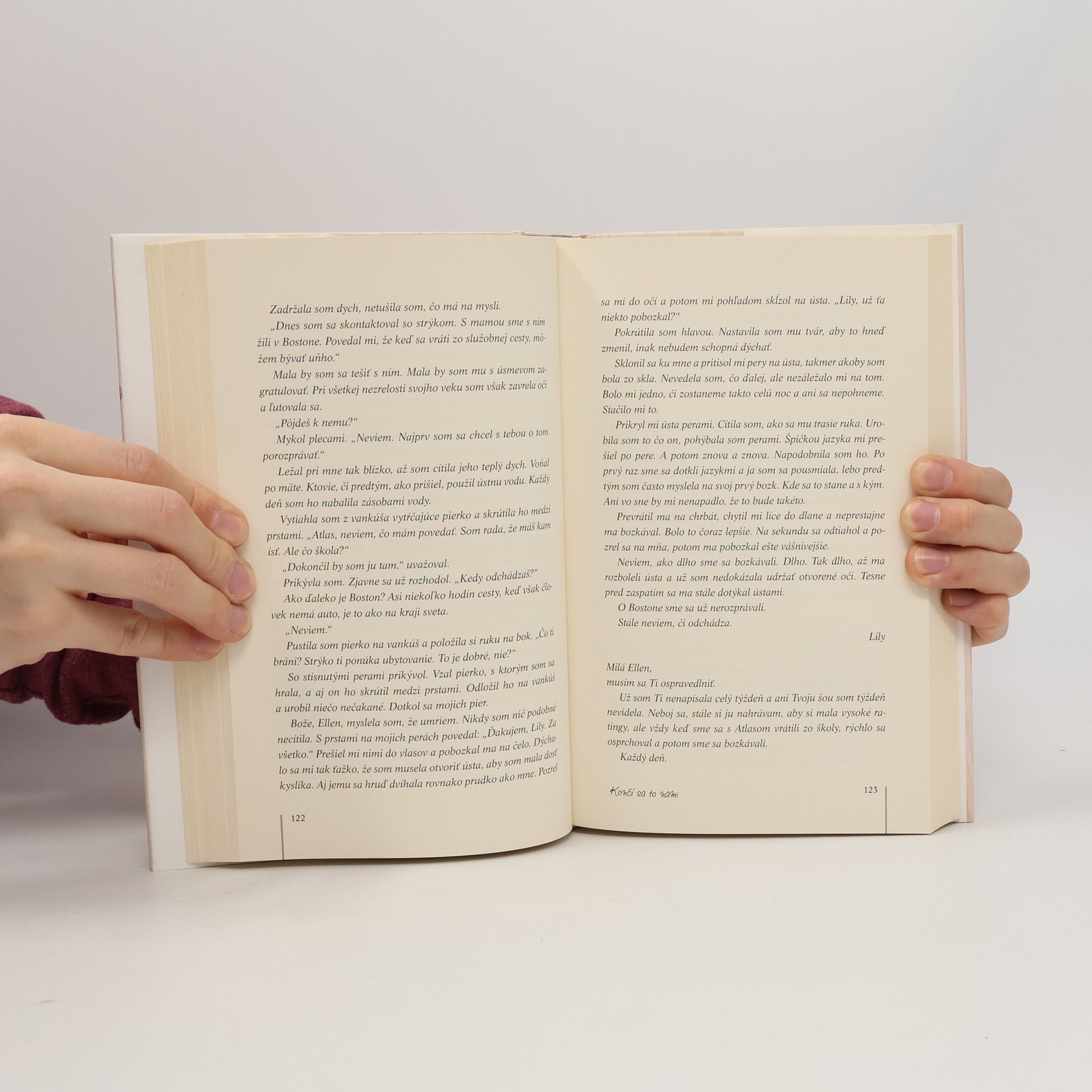 Lily si v detstve vytrpela svoje. Po otcovej smrti opúšťa rodný Maine a usádza sa v Bostone, v meste, kde je všetko lepšie. Aspoň tak jej to kedysi tvrdil Atlas, Lilina spriaznená duša a prvá láska. V Bostone spoznáva ambiciózneho lekára Ryla, no ten sa jej v slabej chvíli prizná, že má averziu k vzťahom, prioritou je kariéra a rodina uňho nemá miesto. Ryle však nedokáže pustiť červenovlásku z hlavy, a tak svoje zásady poruší. Lilin život sa konečne dostáva do správnych koľají, no keď si myslí, že nemôže byť šťastnejšia, pocíti tvrdý úder. Lily si v mladosti písala denník. Po rokoch sa začíta do svojich zápiskov o Atlasovi a rodinnom trápení, čím otvorí staré rany. No občas je aj bolestná spomienka dobrá, najmä ak človeku vo vhodnej chvíli pomôže správne sa rozhodnúť. Končí sa to nami je výnimočná kniha. Autorka pri písaní siahla do vlastných bolestných spomienok a zvečnila okamihy, ktoré by najradšej zo svojho života vymazala. V prvom rade však v tomto odvážnom a hlboko osobnom románe vyrozprávala dojímavý a nezabudnuteľný príbeh lásky.