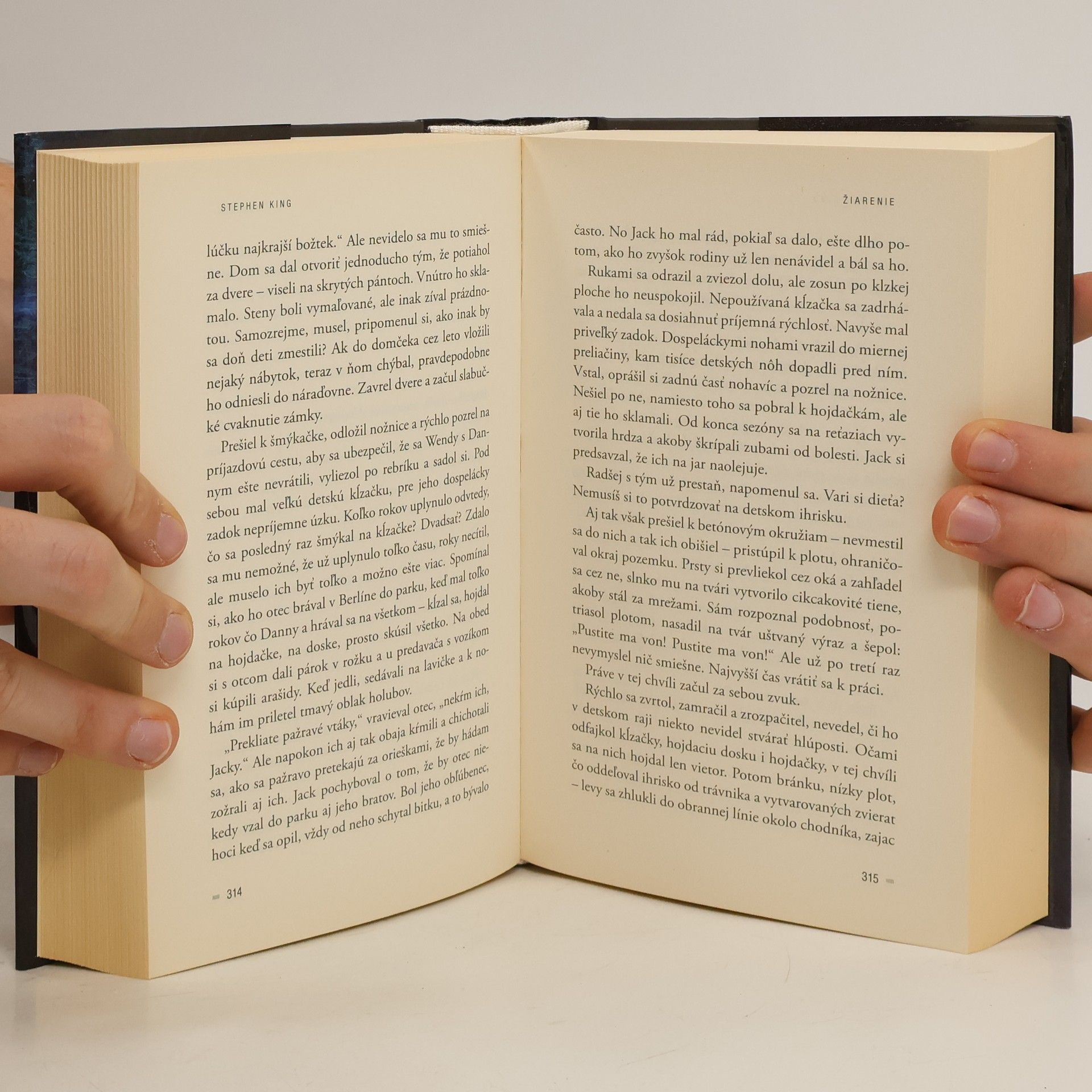 „Vravela, že niečo videla v izbe, kde... sa stalo niečo zlé. V izbe číslo 217. Musíš mi sľúbiť, že do nej nikdy nevojdeš, Danny... vyhýbaj sa jej...“ Hotel Pekná vyhliadka určite patrí medzi najkrajšie horské letoviská na svete, ale nielen preto tu Jack Torrance, dramatik a bývalý alkoholik, prijal miesto správcu v mimosezónnom období. Považuje to najmä za príležitosť na nový začiatok a dúfa, že tu počas zimy napíše svoj nový román. Zúfalo totiž potrebuje uniknúť životnej smole a beznádeji, ktoré ho vytrvalo prenasledujú. Spolu s ním sem prichádza jeho manželka Wendy, aby v majestátnej samote starého hotela so zvláštnou atmosférou, postavenom na starom indiánskom pohrebisku, hľadala možnosť záchrany narušeného manželstva a rodiny. A napokon je tu Danny, päťročný syn s neobyčajným darom – je mimoriadne vnímavý, „žiari“, a má schopnosť predvídať udalosti, ktorým však vo svojom veku nerozumie. V stodesiatich prázdnych hotelových izbách sa totiž niečo deje, niečo, z čoho prechádza mráz po chrbte, skryté zlo, ktoré v hoteli odrezanom od sveta striehne a hrozí...