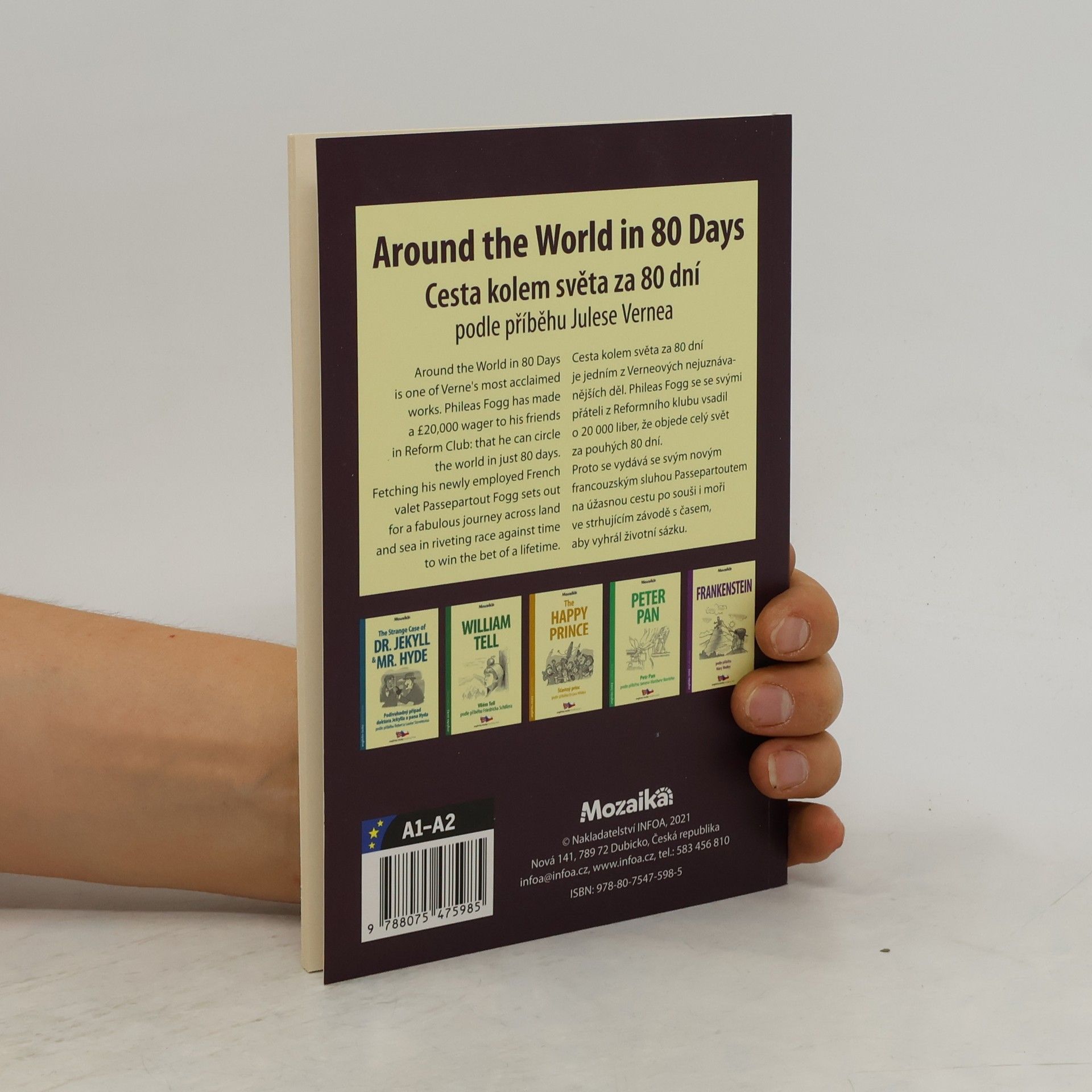 Cesta kolem světa za 80 dní je jedním z Verneových nejuznávanějších děl. Phileas Fogg se se svými přáteli z Reformního klubu vsadil o 20 000 liber, že objede celý svět za pouhých 80 dní. Proto se vydává se svým novým francouzským sluhou Passepartoutem na úžasnou cestu po souši i moři ve strhujícím závodě s časem, aby vyhrál životní sázku. Anglicko-český zrcadlový text pro začátečníky. A trip around the world in 80 days is one of Verne's most acclaimed works. Phileas Fogg and his friends from the Reform Club bet £ 20,000 that he would go around the world in just 80 days. That's why he and his new French servant Passepartout embark on an amazing journey across land and sea in a captivating race against time to win a bet on life. English-Czech mirror text for beginners.