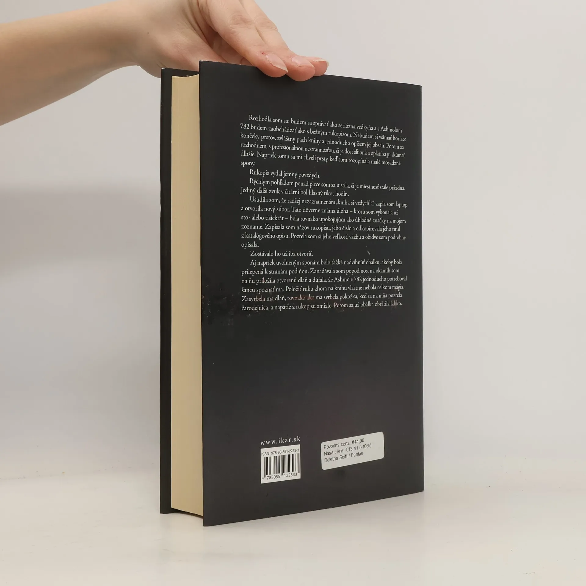 Vedkyňa Diana Bishopová si počas výskumu v oxfordskej Bodleianskej knižnici nevedomky vyžiada zakliaty alchymistický rukopis. Diana pochádza zo starobylého, významného čarodejníckeho rodu, no sama nechce mať nič spoločné s čarodejníctvom, zanevrela naň po smrti svojich rodičov. Preto po zbežnom nahliadnutí a pár poznámkach vráti knihu do skladu. Jej objav však spôsobí nebývalý rozruch vo svete bytostí a do knižnice sa nahrnie horda démonov, čarodejníc a upírov. Diana totiž náhodou natrafila na žiadaný, stáročia stratený poklad - a je jediná, ktorej sa podarilo prelomiť jeho zaklínadlo. Debutujúca spisovateľka Deborah Harknessová napísala fascinujúcu knihu s prvkami histórie a mágie, romantiky i napätia. Diana je odvážna hrdinka, ktorá nájde rovnocenného partnera v úctyhodnom upírovi Matthewovi Clairmontovi. Ich spojenectvo postupne prerastie do intímneho vzťahu, porušujúceho dávne tabu. Bytosti sa nesmú medzi sebou sobášiť, aby neoslabili svoju moc, inak ich neminie krutý trest... Ako mu uniknúť a pritom sa pokúsiť o odhalenie tajomstva rukopisu, ktorý na svojich stranách sľubuje kľúče k poznaniu záhadnej minulosti aj neistej budúcnosti?