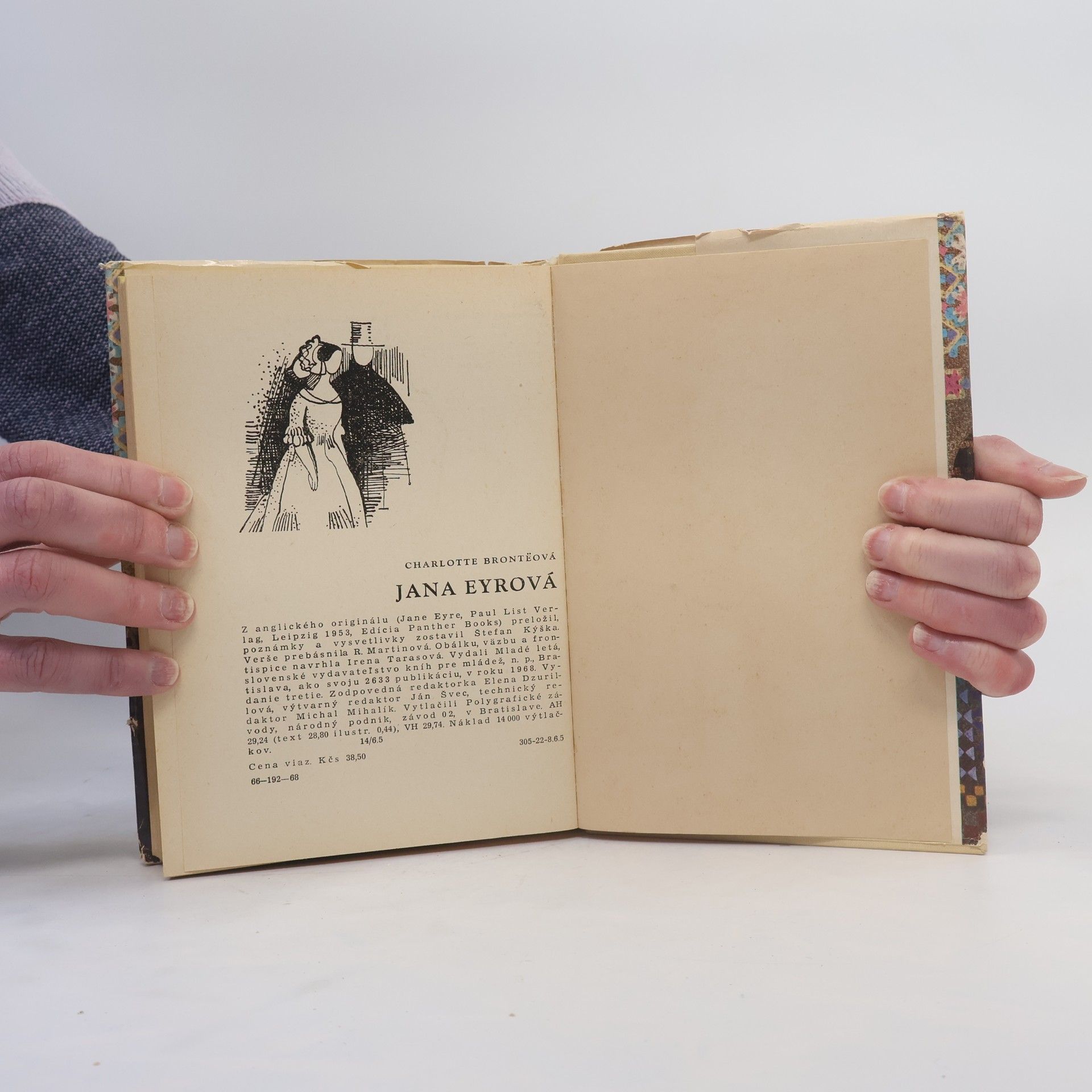 Známy ľúbostný príbeh siroty Jany Eyrovej... Verše prebásnila R. Martinová. Preložil, poznámky a vysvetlivky zostavil Štefan Kýška. (kniha obsahuje rozsiahly poznámkový aparát i výslovnosť cudzích mien a názvov).