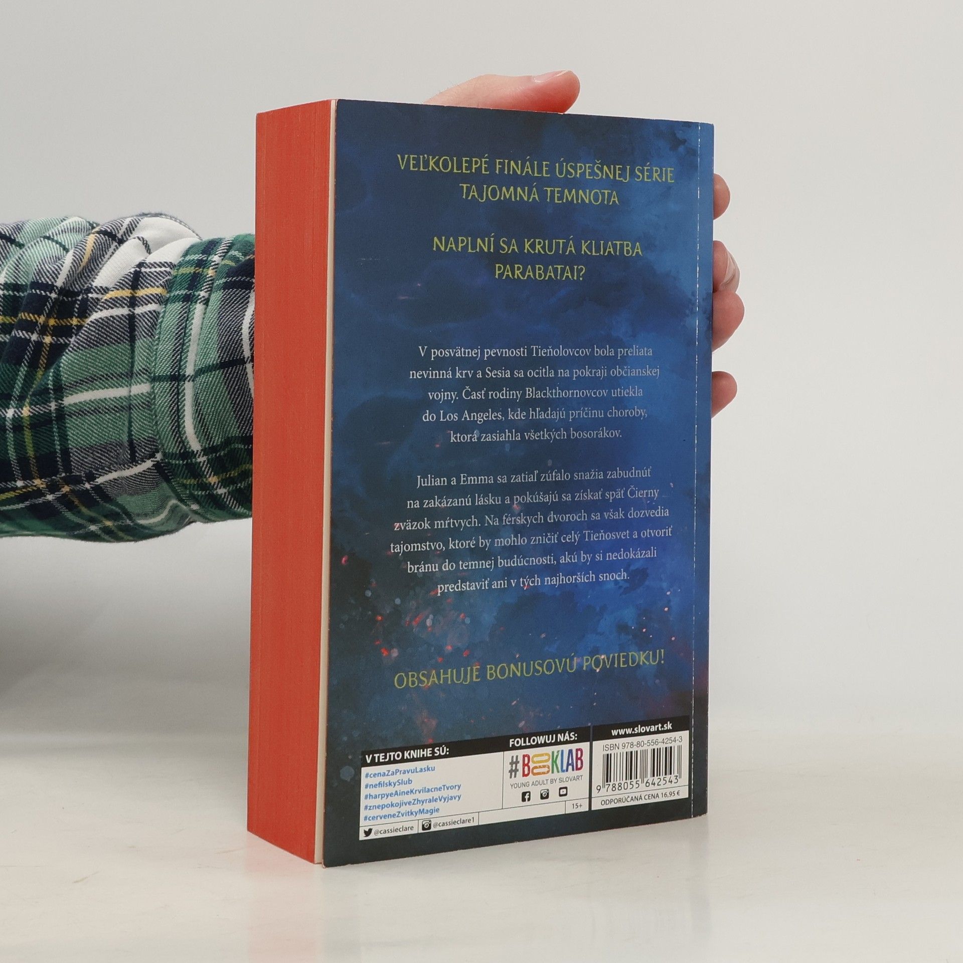 V posvätnej pevnosti Tieňolovcov bola preliata nevinná krv a Sesia sa ocitla na pokraji občianskej vojny. Časť rodiny Blackthornovcov utiekla do Los Angeles a snaží sa nájsť príčinu choroby, ktorá zasiahla všetkých bosorákov. Julian a Emma sa zatiaľ zúfalo snažia zabudnúť na zakázanú lásku a vydávajú sa na nebezpečnú misiu do Férie, aby získali späť Čierny zväzok mŕtvych. Na férskych dvoroch sa však dozvedia tajomstvo, ktoré by mohlo zničiť celý Tieňosvet a otvoriť bránu do temnej budúcnosti, akú by si nedokázali predstaviť ani v tých najhorších snoch. V záverečnej časti bestsellerovej trilógie Tajomná temnota budú musieť Emma a Julian zachrániť svet Tieňolovcov, skôr ako temná sila kliatby parabatai zničí nielen ich, ale aj všetkých, na kom im záleží.