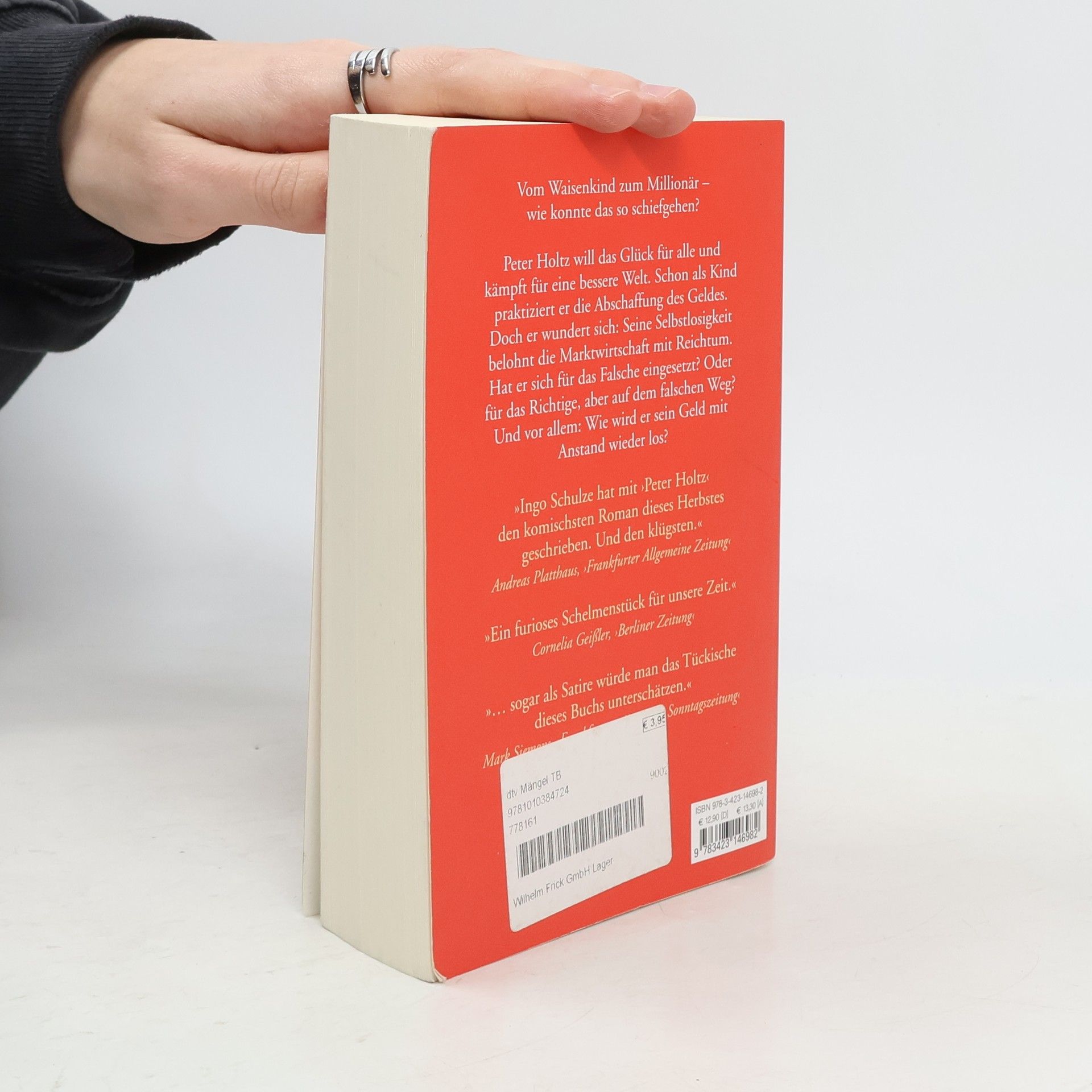 Vom Waisenkind zum Millionär - wie konnte das so schiefgehen? Peter Holtz will das Glück für alle. Schon als Kind praktiziert er die Abschaffung des Geldes, erfindet den Punk aus dem Geist des Arbeiterliedes und bekehrt sich zum Christentum. Als CDU-Mitglied (Ost) kämpft er für eine christlich-kommunistische Demokratie. Doch er wundert sich: Der Lauf der Welt widerspricht aller Logik. Seine Selbstlosigkeit belohnt die Marktwirtschaft mit Reichtum. Hat er sich für das Falsche eingesetzt? Oder für das Richtige, aber auf dem falschen Weg? Und vor allem: Wie wird er das Geld mit Anstand wieder los? Peter Holtz nimmt die Verheißungen des Kapitalismus beim Wort. Mit Witz und Poesie erzählt Ingo Schulze einen höchst originellen Schelmenroman. Wir brauchen Figuren wie Peter Holtz – in Zeiten, in denen die Welt sich auf den Kopf stellt.