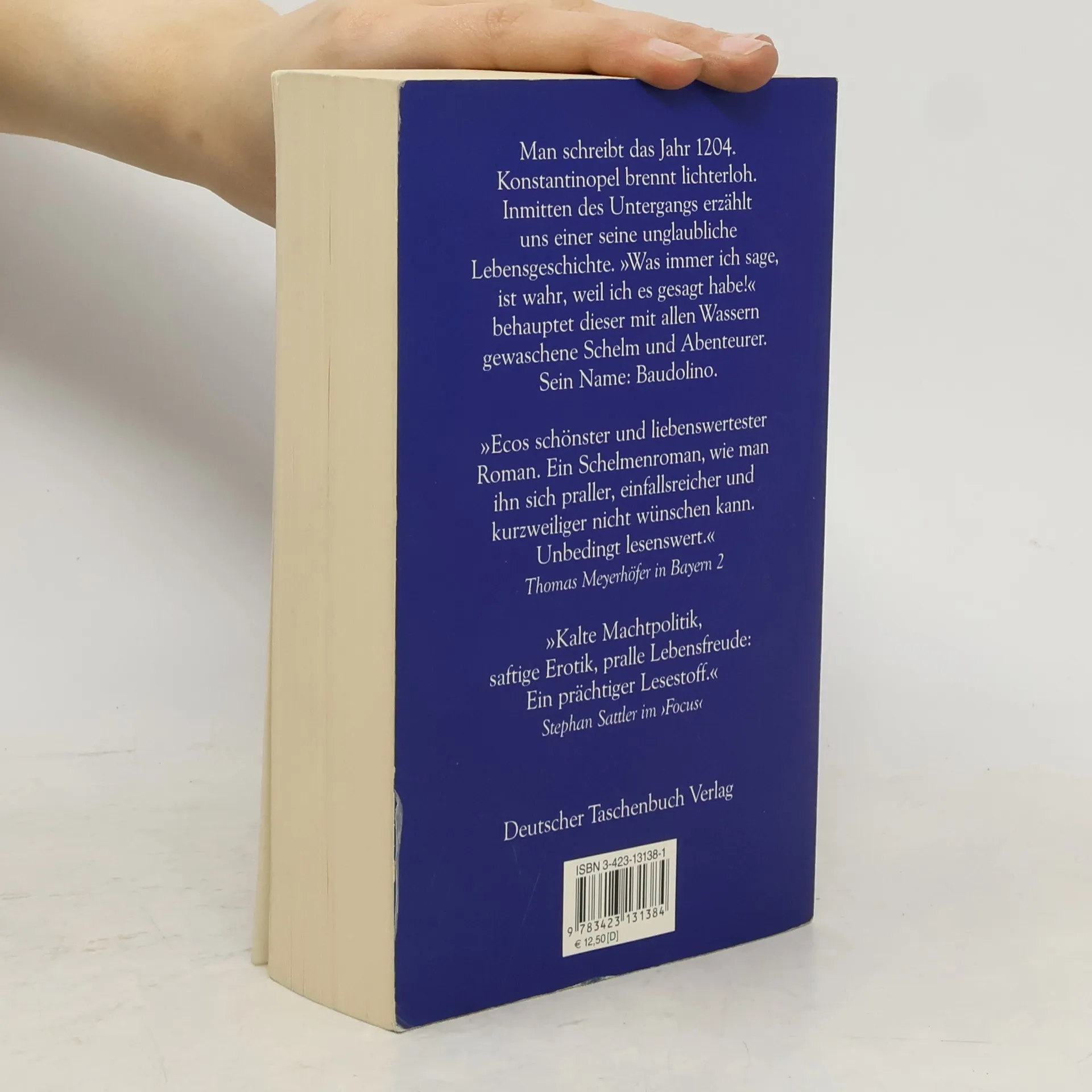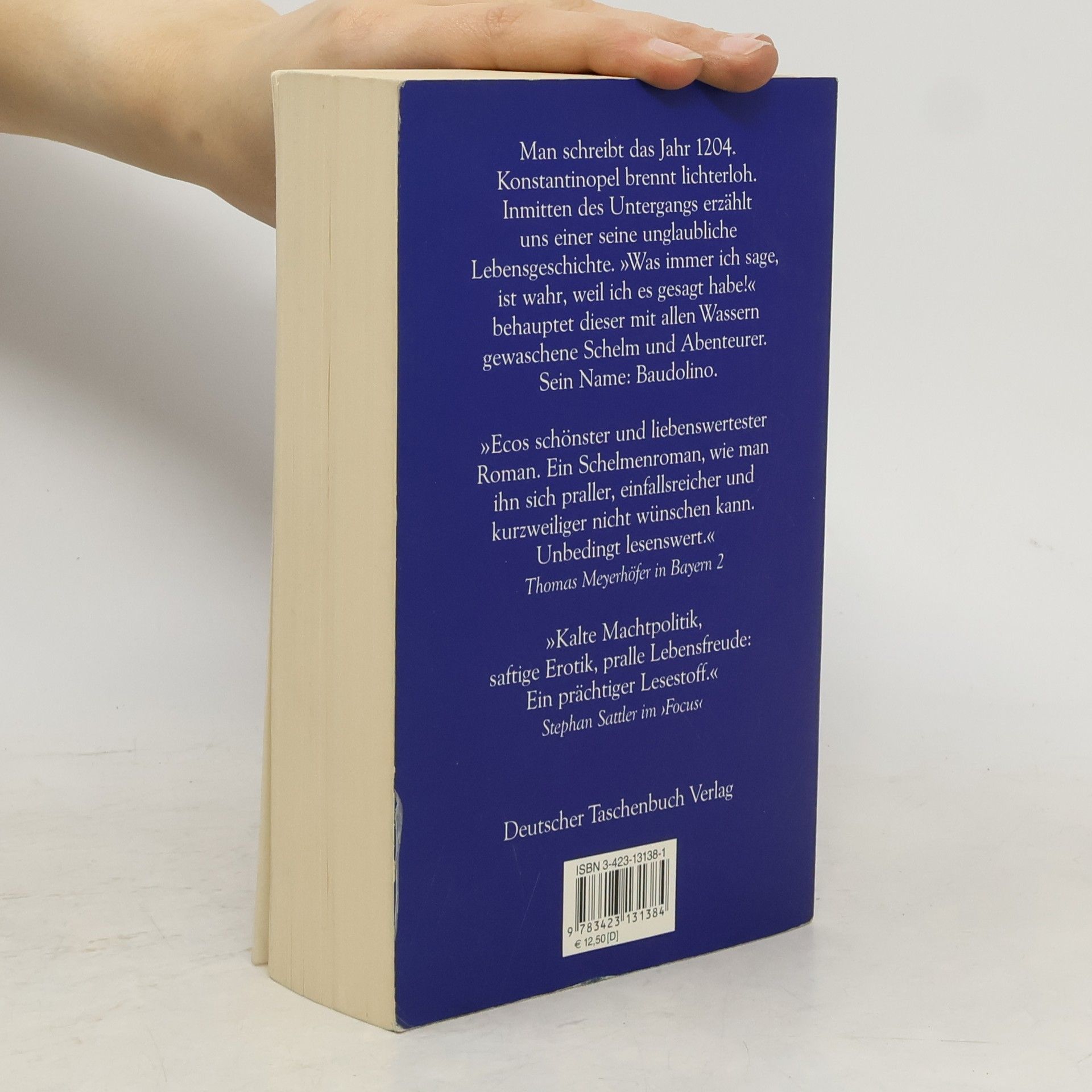 Der mit allen Wassern der Fabulierkunst gewaschene Schelm Baudolino erzählt uns seine Lebensgeschichte. Informationen über die historischen Hintergründe zu »Baudolino« finden Sie im Special des Carl Hanser Verlags ... Konstantinopel brennt! Die prachtvolle Hauptstadt des Byzantinischen Reiches – erobert, geplündert und in Brand gesetzt von den Rittern des Vierten Kreuzzuges. Einer von ihnen ist ein gewisser Baudolino aus dem Piemont. Den Kopf voller Flausen, Phantasien und Lügen, führt er uns durch ein historisches Panorama von überwältigender Breite. Er erzählt, wie er als 13jähriger Bauernsohn den im Nebel herumirrenden Kaiser Barbarossa aufgabelt, der Gefallen an dem naseweisen Jungen findet und ihn daraufhin adoptiert; wie er den Kaiser auf seinen Italienzügen gegen die aufmüpfigen oberitalienischen Städte begleitet und auf den großen Kreuzzug ins Heilige Land, immer auf der Suche nach dem mythischen Reich des Priesterkönigs Johannes im fernen Orient. Und natürlich wie er, Baudolino, mit seinen aberwitzigen Ideen ganz nebenbei den Lauf der Weltgeschichte lenkt, ob nun bei der Heiligsprechung Karls des Großen 1165 oder bei der Erfindung der Legende der Heiligen Drei Könige, um dem Erzbischof von Köln, Rainald von Dassel, einen überwältigenden Einzug in seine Domkirche zu sichern.