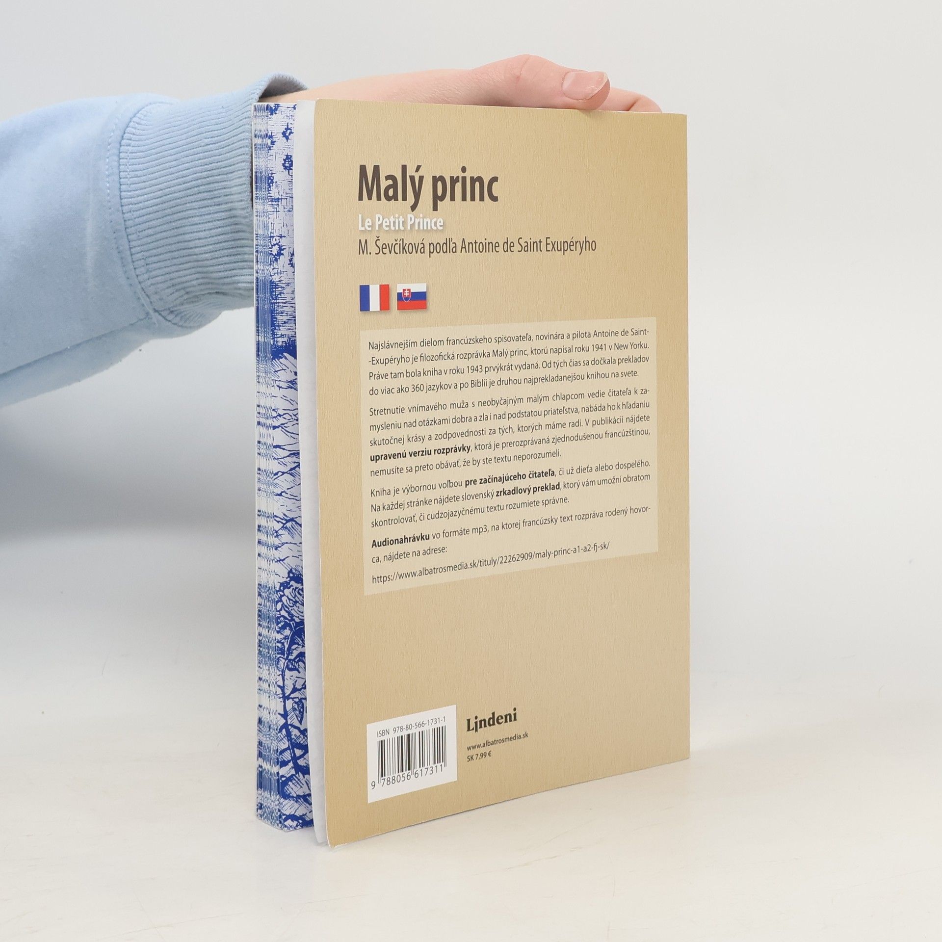 Najslávnejším dielom francúzskeho spisovateľa, novinára a pilota Antoine de Saint-Exupéryho je filozofická rozprávka Malý princ, ktorú napísal roku 1941 v New Yorku. Práve tam bola kniha v roku 1943 prvýkrát vydaná. Od tých čias sa dočkala prekladov do viac ako 360 jazykov a po Biblii je druhou najprekladanejšou knihou na svete. Stretnutie vnímavého muža s neobyčajným malým chlapcom vedie čitateľa k zamysleniu nad otázkami dobra a zla i nad podstatou priateľstva, nabáda ho k hľadaniu skutočnej krásy a zodpovednosti za tých, ktorých máme radi. V publikácii nájdete upravenú verziu rozprávky, ktorá je prerozprávaná zjednodušenou francúzštinou, nemusíte sa preto obávať, že by ste textu neporozumeli. Kniha je výbornou voľbou pre začínajúceho čitateľa, či už dieťa alebo dospelého. Na každej stránke nájdete slovenský zrkadlový preklad, ktorý vám umožní obratom skontrolovať, či cudzojazyčnému textu rozumiete správne.