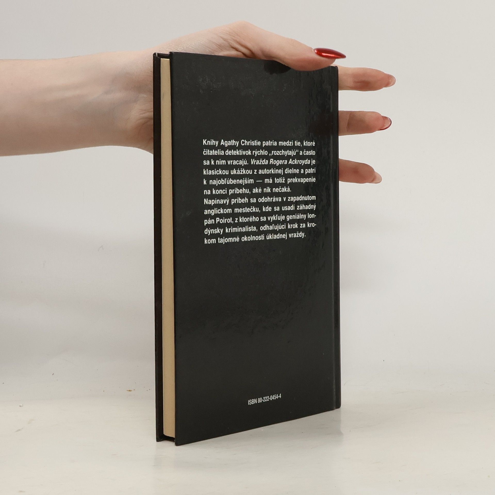 Vražda Rogera Ackroyda z roku 1926, jeden z najslávnejších románov legendárnej spisovateľky, sa právom pokladá za jej majstrovské dielo. Jeho význam pretrváva do dnešných dní, čo dokazuje i fakt, že pred niekoľkými rokmi britská Asociácia autorov kriminálnych románov vyhlásila Vraždu Rogera Ackroyda za najlepšiu detektívku všetkých čias. Roger Ackroyd, bohatý podnikateľ a vdovec, bol muž, čo vedel priveľa. Vedel, že žena, ktorú miluje a chce sa s ňou oženiť, otrávila svojho prvého manžela. Vedel, že ju niekto vydieral, aj že si sama vzala život. Krátko po jej smrti mu príde list, z ktorého sa mal dozvedieť, kto je ten záhadný vydierač. Ibaže Ackroyd zomrie, skôr ako list dočíta – prebodnutý odzadu v obľúbenom kresle vo svojej pracovni. Vtedy na scénu prichádza priateľ zavraždeného, belgický detektív na dôchodku, ktorým nie je nik iný ako slávny Hercule Poirot...