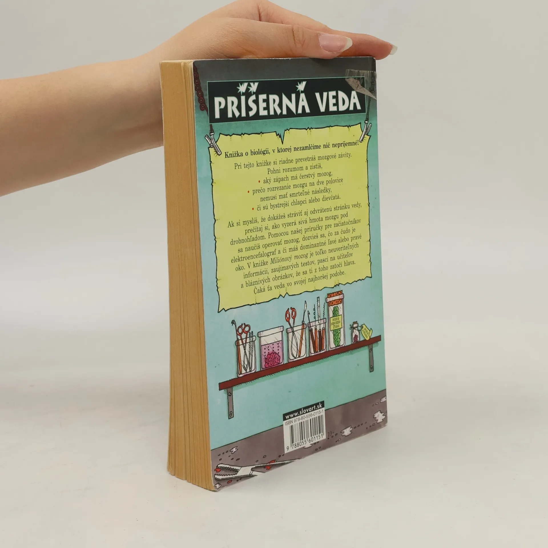 Knižka o biológii, v ktorej nezamlčíme nič nepríjemné! Pri tejto knižke si riadne prevetráš mozgové závity. Pohni rozumom a zistíš, aký zápach má čerstvý mozog, prečo rozrezanie mozgu na dve polovice nemusí mať smrteľné následky, či sú bystrejší chlapci alebo dievčatá. Ak si myslíš, že dokážeš stráviť aj odvrátenú stránku vedy, prečítaj si, ako vyzerá sivá hmota mozgu pod drobnohľadom. Pomocou našej príručky pre začiatočníkov sa naučíš operovať mozog, dozvieš sa, čo za čudo je elektroencefalograf a či si ľavooký alebo pravooký. V knižke Miliónový mozog je toľko neuveriteľných informácií, zaujímavých testov, pascí na učiteľov a bláznivých obrázkov, že sa ti z toho zatočí hlava.
