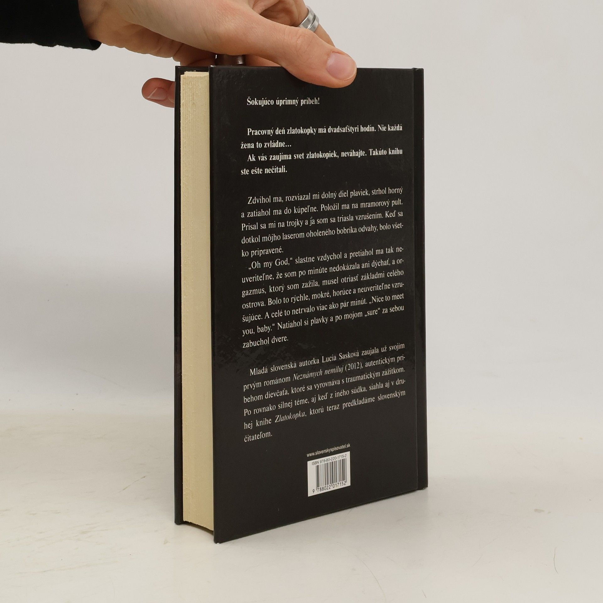 V klenotníctve predávala diamantové šperky - najčastejšie zlatokopkám, ktoré prichádzali v sprievode svojich partnerov. Po čase sa sama stala jednou z nich. Svojho o hlavu menšieho partnera s plešinkou a bruškom pomenovala Chrústik. Zaplatil jej plastiku, aby mala vysnívané trojky, pery jej dal napichať botoxom, čo sa jej až tak nepáčilo, ale čoraz častejšie jej zveroval svoju zlatú kartu... Ak vás čo len trochu zaujíma svet zlatokopiek, neváhajte