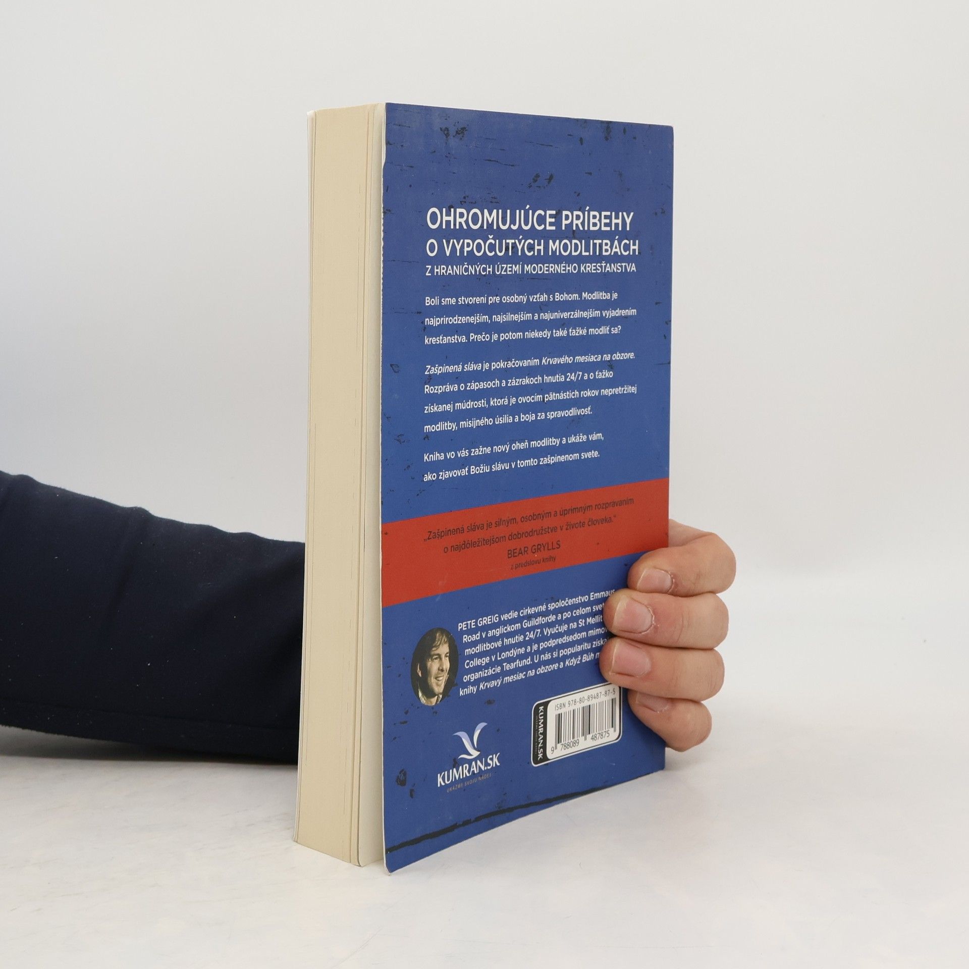 Choď tam, kam ťa zavedú tvoje najlepšie modlitby. Kniha vo vás zažne nový oheň modlitby a ukáže vám, ako zjavovať Božiu slávu v tomto zašpinenom svete. Boli sme stvorení pre osobný vzťah s Bohom. Modlitba je najprirodzenejším, najsilnejším a najuniverzálnejším vyjadrením kresťanstva. Prečo je potom niekedy také ťažké modliť sa? Zašpinená sláva je pokračovaním Krvavého mesiaca na obzore. Rozpráva o zápasoch a zázrakoch hnutia 24/7 a o ťažko získanej múdrosti, ktorá je ovocím pätnástich rokov nepretržitej modlitby, misijného úsilia a boja za spravodlivosť. „Zašpinená sláva je silným, osobným a úprimným rozprávaním o najdôležitejšom dobrodružstve v živote človeka.“ (Bear Grylls) Pete Greig vedie cirkevné spoločenstvo Emmaus Road v anglickom Guildforde a po celom svete šíri modlitbové hnutie 24/7. Vyučuje na St Mellitus College v Londýne a je podpredsedom mimovládnej organizácie Tearfund. U nás si popularitu získali jeho knihy Krvavý mesiac na obzore a Když Bůh mlčí.