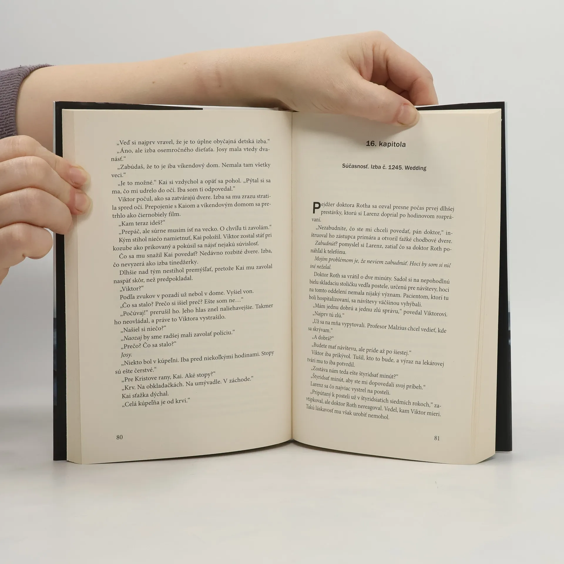 Dvanásťročná Josy, dcéra psychiatra Viktora Larenza, záhadne zmizne z ambulancie, zatiaľ čo jej otec čaká v čakárni. Lekár a sestrička tvrdia, že tam nikdy nevstúpila, a od tej doby nikto nevie, čo sa s ňou stalo. Viktor sa snaží vyrovnať s tragédiou. O štyri roky neskôr sa rozhodne poskytnúť interview renomovanému týždenníku a odchádza do osamoteného víkendového domu na ostrove Parkum, aby si premyslel odpovede. Tam ho navštívi záhadná mladá žena, ktorá sa predstaví ako spisovateľka a sťažuje sa na bludné predstavy. Neustále sa jej zjavuje malé dievčatko, ktoré zmizlo bez stopy, podobne ako Viktorova dcéra. Požaduje, aby ju liečil, pričom sa odvoláva na odporúčanie Viktorovho kolegu. Napriek počiatočným pochybnostiam, spôsobeným traumatizujúcou udalosťou, Viktor začne s terapiou, ktorá sa čoskoro mení na dramatický výsluch. Cez chaotické výpovede schizofreničky sa podarí prekročiť hranice medzi predstavou a realitou, pričom čitateľ postupne stráca schopnosť rozlíšiť, čo je skutočné a čo je len chorým výplodom. Tento psychotriler, plný hororových prvkov, sa stal debutom roka a ponúka nepredvídateľný, napínavý a majstrovsky vystavaný príbeh s prekvapujúcim rozuzlením.