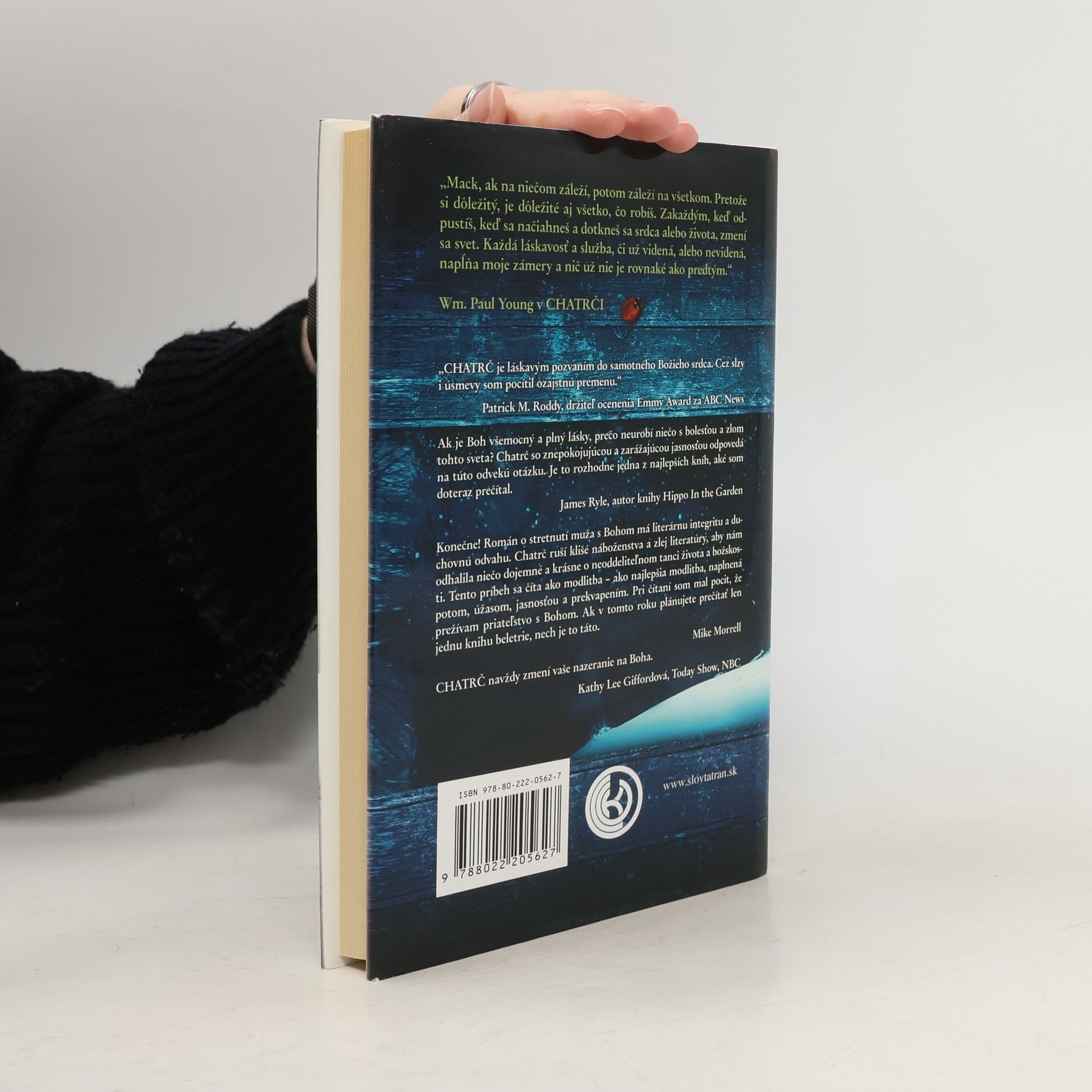 Konečne! Román o stretnutí muža s Bohom má literárnu integritu a duchovnú odvahu. Chatrč ruší klišé náboženstva a zlej literatúry, aby nám odhalila niečo dojemné a krásne o neoddeliteľnom tanci života a božskosti. Missy, najmladšiu dcéru Mackenzieho Allena Philipsa, unesú počas rodinného výletu, a v opustenej chatrči hlboko v oregonskej divočine sa nájde dôkaz, že ju zrejme brutálne zavraždili. O štyri roky neskôr, uprostred svojho Veľkého smútku, dostáva Mack podozrivý odkaz, podľa všetkého od Boha, v ktorom ho pozýva na víkendové stretnutie v tejto chatrči. Navzdory zdravému úsudku prichádza počas zimného popoludnia do chatrče a vracia sa do svojej najtemnejšej nočnej mory. To, čo tam Mack nájde, navždy zmení jeho svet. V období, keď sa náboženstvo stáva čoraz bezvýznamnejším, zápasí CHATRČ s nadčasovou otázkou: Kde je Boh vo svete, ktorý je taký plný nevýslovnej bolesti? Odpoveď, ktorú Mack dostáva, vás ohromí a azda zmení rovnako, ako zmenila jeho. Budete chcieť, aby si túto knihu prečítali všetci!