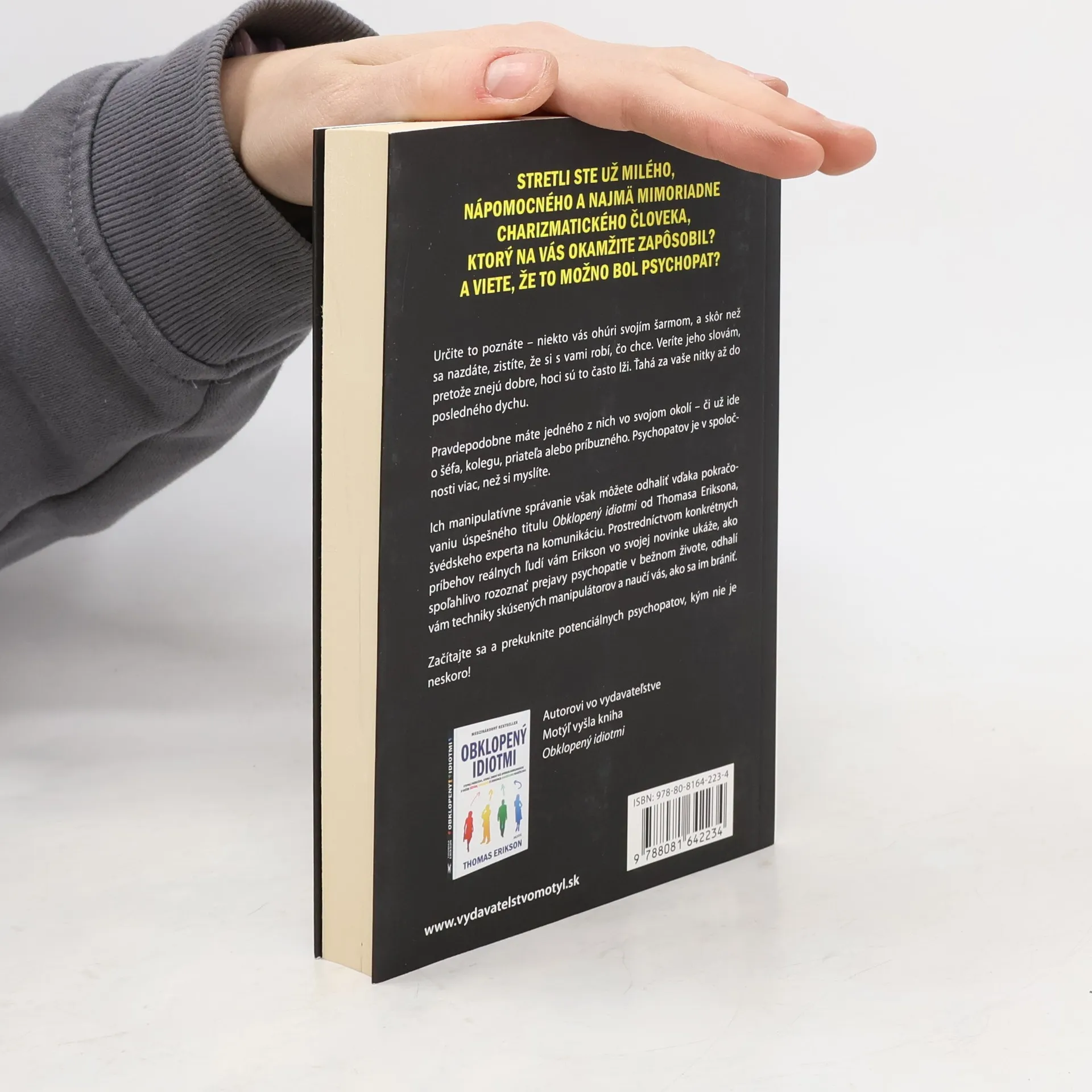 Stretli ste už milého, nápomocného a najmä mimoriadne charizmatického človeka, ktorý na vás okamžite zapôsobil? A viete, že to možno bol psychopat? Určite to poznáte - niekto vás ohúri svojím šarmom, a skôr než sa nazdáte, zistíte, že si s vami robí, čo chce. Veríte jeho slovám, pretože znejú dobre, hoci sú to často lži. Ťahá za vaše nitky až do posledného dychu. Pravdepodobne máte jedného z nich vo svojom okolí - či už ide o šéfa, kolegu, priateľa alebo príbuzného. Psychopatov je v spoločnosti viac, než si myslíte. Ich manipulatívne správanie však môžete odhaliť vďaka pokračovaniu úspešného titulu Obklopený idiotmi od Thomasa Eriksona, švédskeho experta na komunikáciu. Prostredníctvom konkrétnych príbehov reálnych ľudí vám Erikson vo svojej novinke ukáže, ako spoľahlivo rozoznať prejavy psychopatie v bežnom živote, odhalí vám techniky skúsených manipulátorov a naučí vás, ako sa im brániť. Začítajte sa a prekuknite potenciálnych psychopatov, kým nie je neskoro!