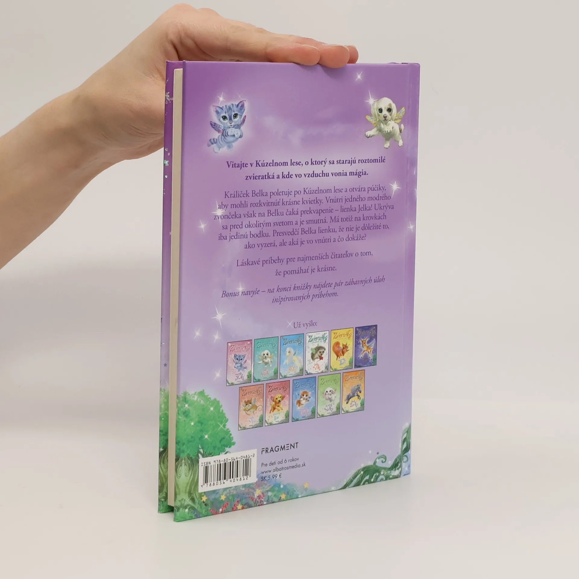 Vitajte v Kúzelnom lese, o ktorý sa starajú roztomilé zvieratká, a kde vo vzduchu vonia mágia. Králiček Belka poletuje po Kúzelnom lese a otvára púčiky, aby mohli rozkvitnúť krásne kvietky. Vnútri jedného modrého zvončeka však na ňu čaká prekvapenie – lienka Jelka! Ukrýva sa pred okolitým svetom a je smutná. Má totiž na krovkách iba jedinú bodku. Presvedčí Belka lienku, že nie je dôležité to, ako vyzerá, ale aká je vo vnútri a čo dokáže? Láskavé príbehy pre najmenších čitateľov o tom, že pomáhať je krásne. Bonus navyše – na konci knižky nájdete pár zábavných úloh inšpirovaných príbehom.