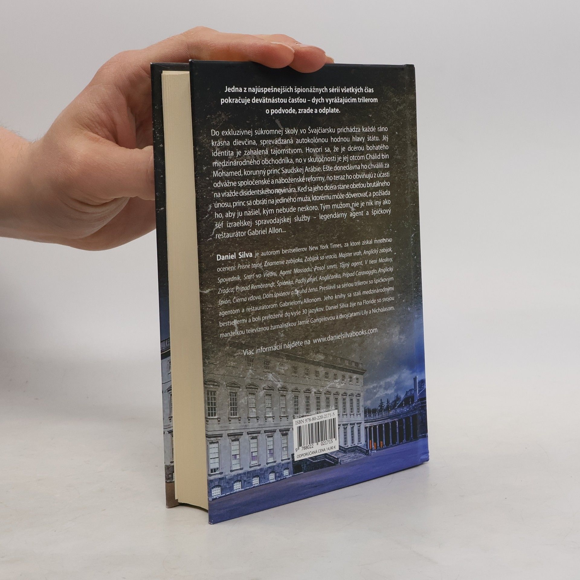 Jedna z najúspešnejších špionážnych sérii všetkých čias pokračuje devätnástou časťou- dych vyrážajúcim trilerom o podvode,zrade a odplate. Do exkluzívnej súkromnej školy vo Švajčiarsku prichádza každé ráno krásna dievčina s havraními vlasmi, sprevádzaná autokolónou hodnou hlavy štátu. Jej identita je zahalená tajomstvom. Hovorí sa, že je dcérou bohatého medzinárodného obchodníka,no v skutočnosti je jej otcom Chálid bin Mohamed, neslávny korunný princ Saudskej Arábie. Ešte donedávna ho chválili za odvážne spoločenské a náboženské reformy,no teraz ho obviňujú z účasti na vražde disidentského novinára. A keď sa jeho dcéra stane obeťou brutálneho únosu, obráti sa na Gabriela Allona- jediného muža, ktorému môže dôverovať- a požiada ho, aby ju našiel, kým nebude neskoro...