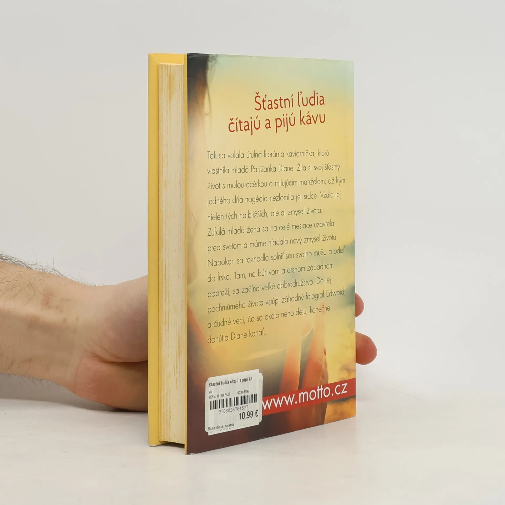 Dá sa zlomené srdce vyliečiť? Autorka tohto bestsellera Agnes Martin-Lugand vás zavedie do drsného, no čarokrásneho Írska, kde sa odohráva príbeh prirovnávaný k obľúbenému filmu Pod toskánskym nebom. Šťastní ľudia čítajú a pijú kávu. Tak sa volala útulná literárna kaviarnička, ktorú vlastnila mladá Parížanka Diane. Žila si svoj šťastný život s malou dcérkou a milujúcim manželom, až kým jedného dňa tragédia nezlomila jej srdce. Vzala jej nielen tých najbližších, ale aj zmysel života. Zúfalá mladá žena sa na celé mesiace uzavrela pred svetom a márne hľadala nový zmysel života. Napokon sa rozhodla splniť sen svojho muža a odísť do Írska. Tam, na búrlivom a drsnom západnom pobreží, sa začína veľké dobrodružstvo. Do jej pochmúrneho života vstúpi záhadný fotograf Edward, a čudné veci, čo sa okolo neho dejú, konečne donútia Diane konať... Filmové práva na knihu získala spoločnosť TWC a chystá sa filmová verzia tohto bestsellera.