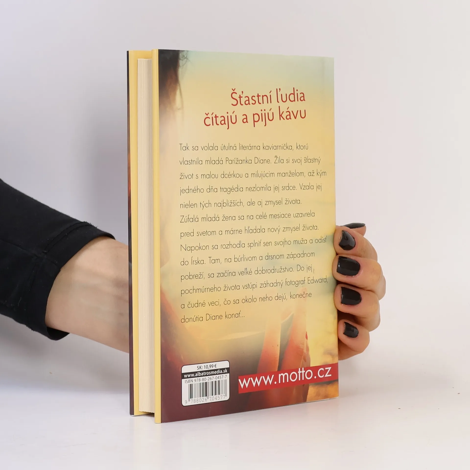 Dá sa zlomené srdce vyliečiť? Autorka tohto bestsellera Agnes Martin-Lugand vás zavedie do drsného, no čarokrásneho Írska, kde sa odohráva príbeh prirovnávaný k obľúbenému filmu Pod toskánskym nebom. Šťastní ľudia čítajú a pijú kávu. Tak sa volala útulná literárna kaviarnička, ktorú vlastnila mladá Parížanka Diane. Žila si svoj šťastný život s malou dcérkou a milujúcim manželom, až kým jedného dňa tragédia nezlomila jej srdce. Vzala jej nielen tých najbližších, ale aj zmysel života. Zúfalá mladá žena sa na celé mesiace uzavrela pred svetom a márne hľadala nový zmysel života. Napokon sa rozhodla splniť sen svojho muža a odísť do Írska. Tam, na búrlivom a drsnom západnom pobreží, sa začína veľké dobrodružstvo. Do jej pochmúrneho života vstúpi záhadný fotograf Edward, a čudné veci, čo sa okolo neho dejú, konečne donútia Diane konať... Filmové práva na knihu získala spoločnosť TWC a chystá sa filmová verzia tohto bestsellera.