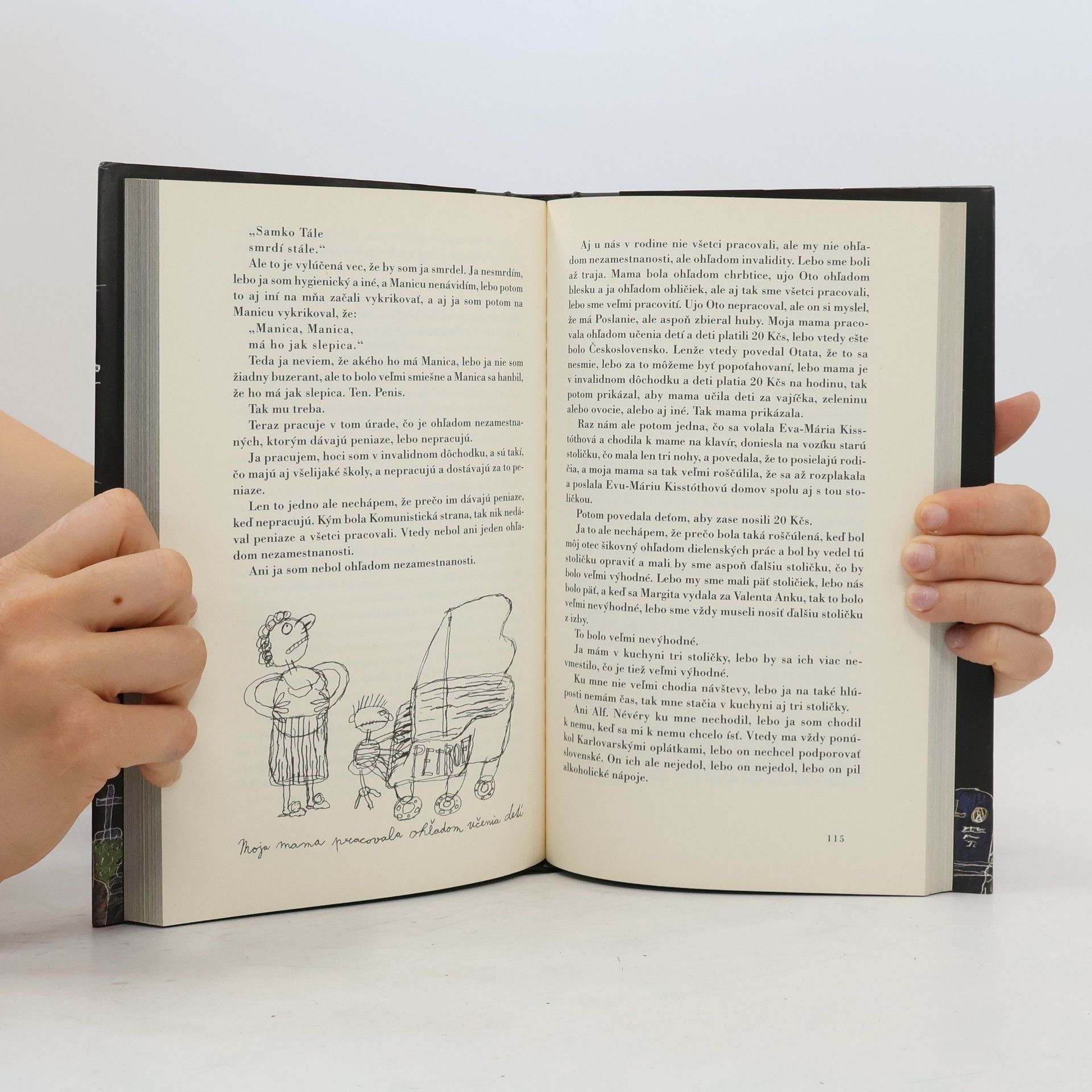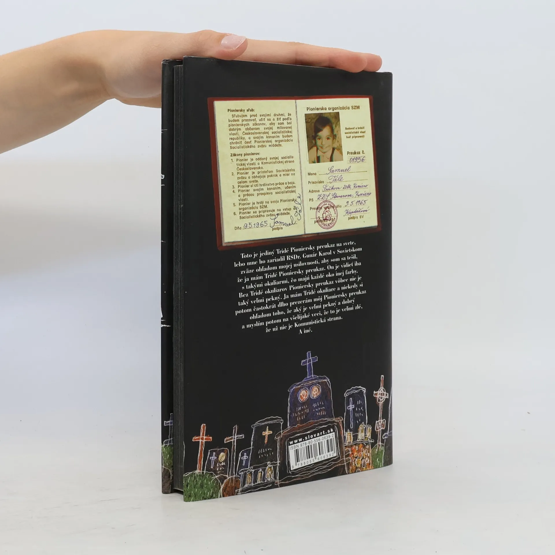 Prvé ilustrované vydanie knižného bestselleru! „Skoro dokumentárne štylizované rozprávanie mentálne zaostalého Samka, ktorý chodí po Komárne, zbiera starý papier, všetkých pozná, na všetko má svoj názor, a keďže má práve pokazenú káričku, začne písať Knihu o cintoríne. Prijmeme túto hru a čakáme, čo sa z toho vykľuje. A kľuje sa zmysel pre lyriku, iróniu a mágiu. Pestrá škála tém: od slovensko-maďarských vzťahov, intelektualizmu, homosexuality, porovnania komunizmu a dneška, až po pestrú škálu ľudských osudov.“