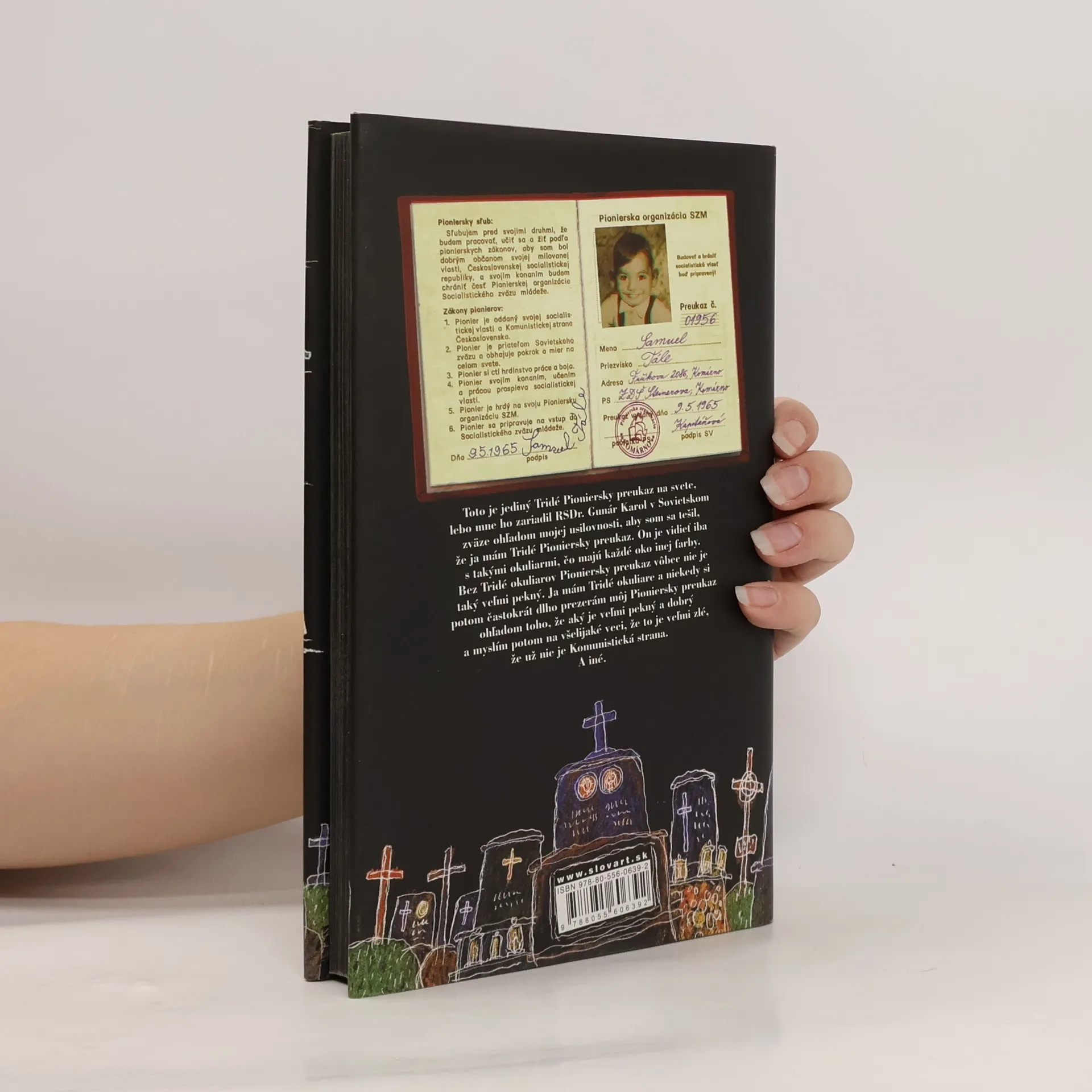 Prvé ilustrované vydanie knižného bestselleru! „Skoro dokumentárne štylizované rozprávanie mentálne zaostalého Samka, ktorý chodí po Komárne, zbiera starý papier, všetkých pozná, na všetko má svoj názor, a keďže má práve pokazenú káričku, začne písať Knihu o cintoríne. Prijmeme túto hru a čakáme, čo sa z toho vykľuje. A kľuje sa zmysel pre lyriku, iróniu a mágiu. Pestrá škála tém: od slovensko-maďarských vzťahov, intelektualizmu, homosexuality, porovnania komunizmu a dneška, až po pestrú škálu ľudských osudov.“