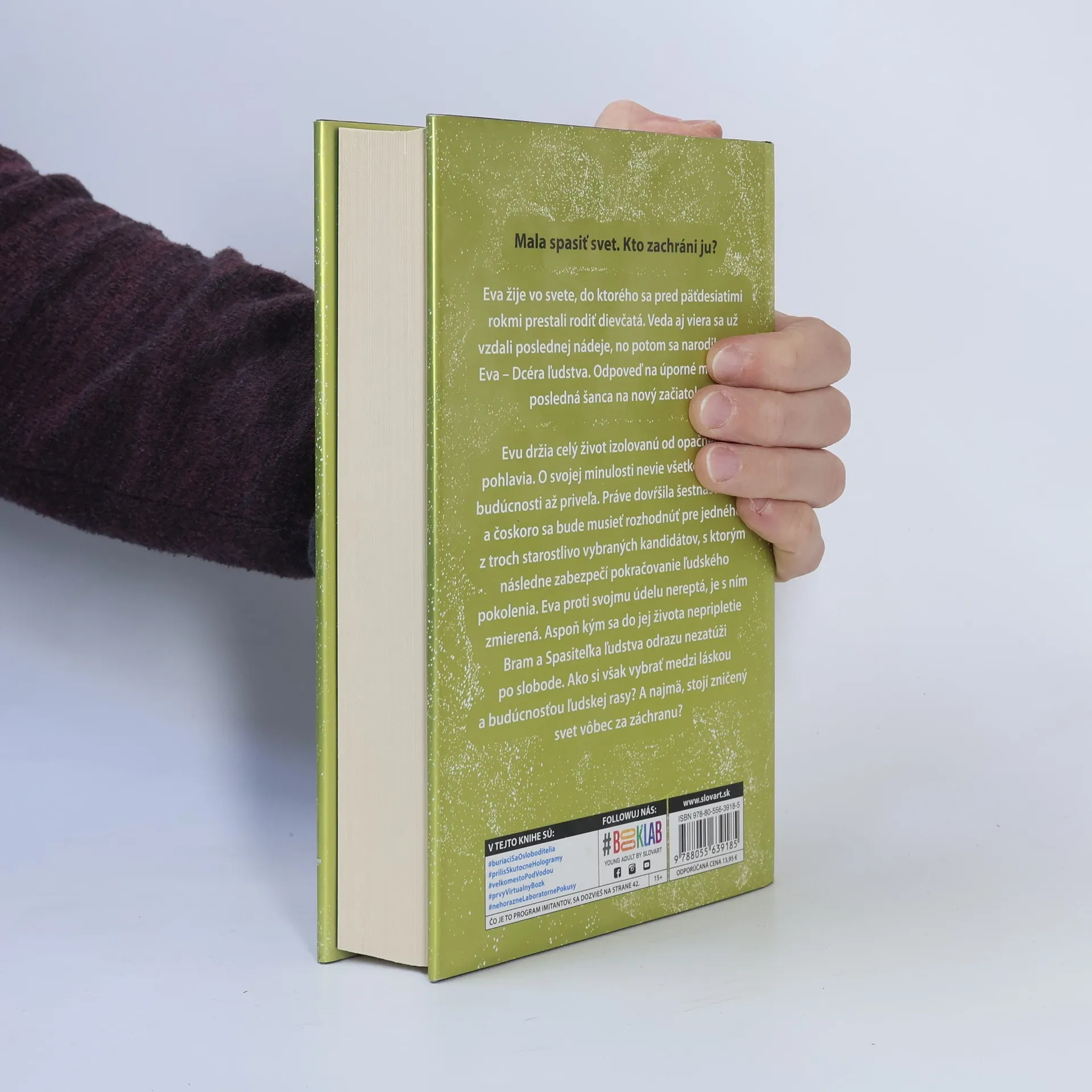 Svet postihla pohroma, keď sa doň prestali rodiť dievčatá. Celých dlhých päťdesiat rokov sa ľudia snažia prísť na to, čo je za tým. Vedci robia pokusy, veriaci sa modlia. Až sa napokon predsa len dočkajú zázraku, v ktorý už pomaly nik nedúfal. Narodí sa Eva, odpoveď na ich modlitby, ich posledná nádej. Evu držia celý život izolovanú od opačného pohlavia. O svojej minulosti nevie všetko. O svojej budúcnosti až priveľa. Až dovŕši šestnásť rokov, vyberú pre ňu troch vhodných kandidátov, pričom s jedným z nich má zabezpečiť pokračovanie ľudského pokolenia. Nie práve najľahšia úloha... Eva však tento svoj osud prijala, je s ním zmierená. Aspoň kým sa do jej života nepripletie Bram a Spasiteľka ľudstva odrazu nezatúži po slobode. Ako si však vybrať medzi láskou a budúcnosťou ľudskej rasy? Tom a Giovanna Fletcherovci sú mimoriadne úspešným spisovateľským párom, čoho dôkazom je aj tento nezvyčajný ľúbostný príbeh o poslednom dievčati na Zemi, zasadený do dystopického sveta blízkej budúcnosti.