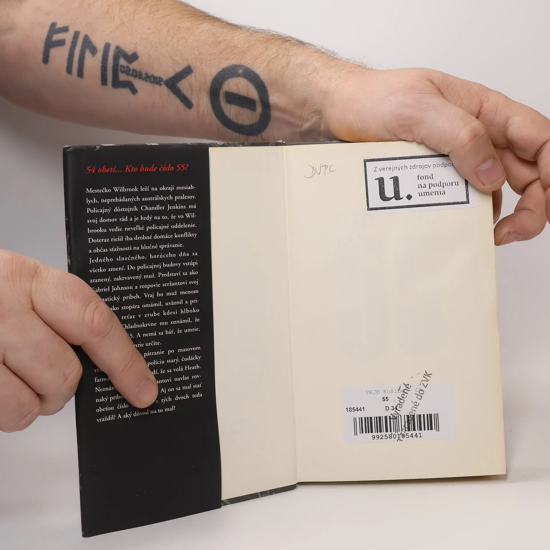 54 obetí... Kto bude číslo 55? Mestečko Wilbrook leží na okraji rozsiahlych, neprebádaných austrálskych pralesov. Policajný dôstojník Chandler Jenkins má svoj domov rád a je hrdý na to, že vo Wilbrooku vedie neveľké policajné oddelenie. Doteraz riešil iba drobné domáce konflikty a občas sťažnosti na hlučné správanie. Jedného slnečného, horúceho dňa sa však všetko zmení. Do policajnej budovy vstúpi zranený, zakrvavený muž. Predstaví sa ako Gabriel Johnson a rozpovie seržantovi svoj dramatický príbeh. Vraj ho muž menom Heath ako stopára omámil, uväznil a priviazal na reťaz v zrube kdesi hlboko v horách. Chladnokrvne mu oznámil, že bude číslom 55. A nemá sa báť, že umrie, lebo zakrátko umrie určite. Keď sa rozbehne pátranie po masovom vrahovi, privedie na políciu starý, čudácky farmár muža, ktorý tvrdí, že sa volá Heath. Neznámy rozpovie seržantovi navlas rovnaký príbeh ako Gabriel. Aj on sa mal stať obeťou číslo 55. Kto z tých dvoch teda vraždil? A aký dôvod na to mal?