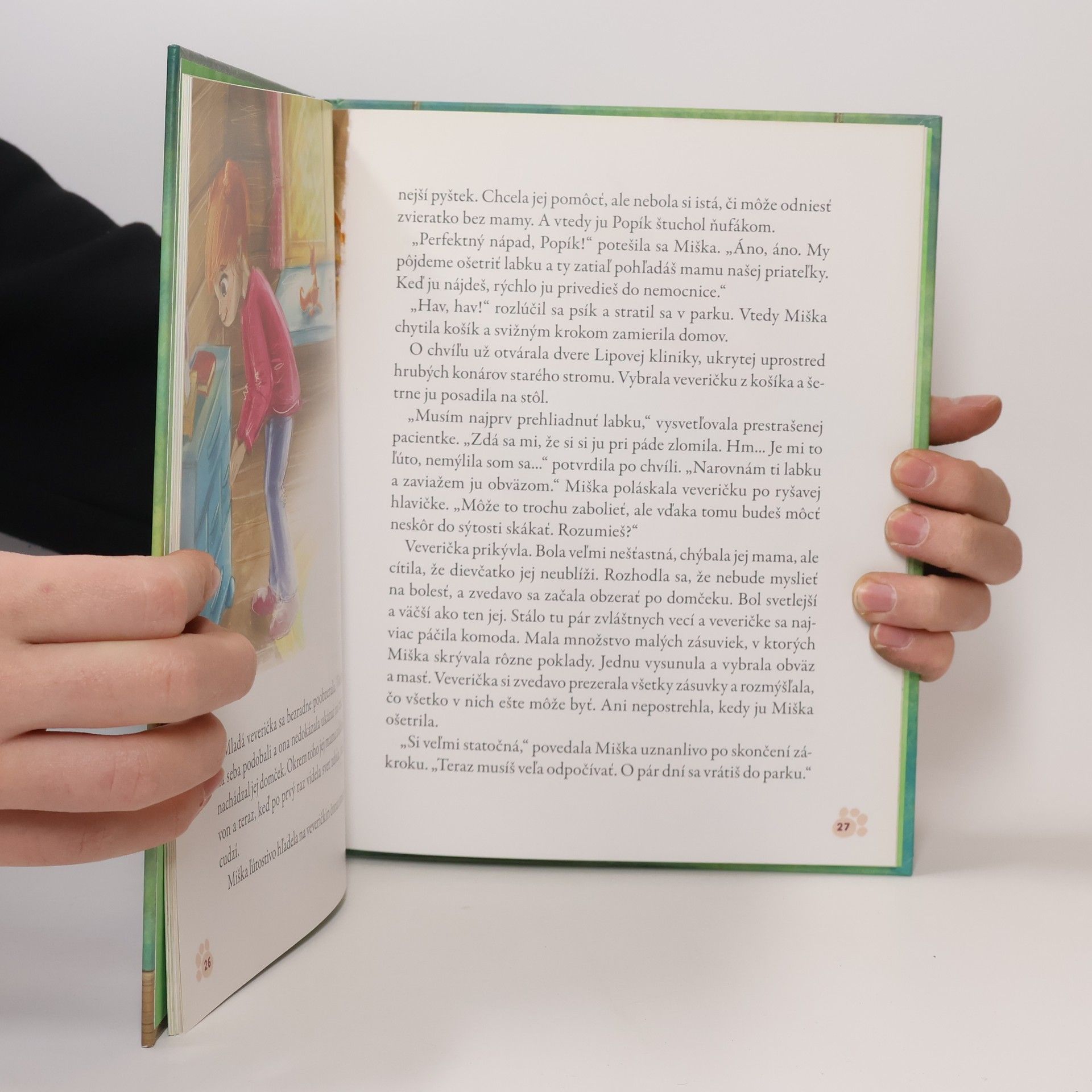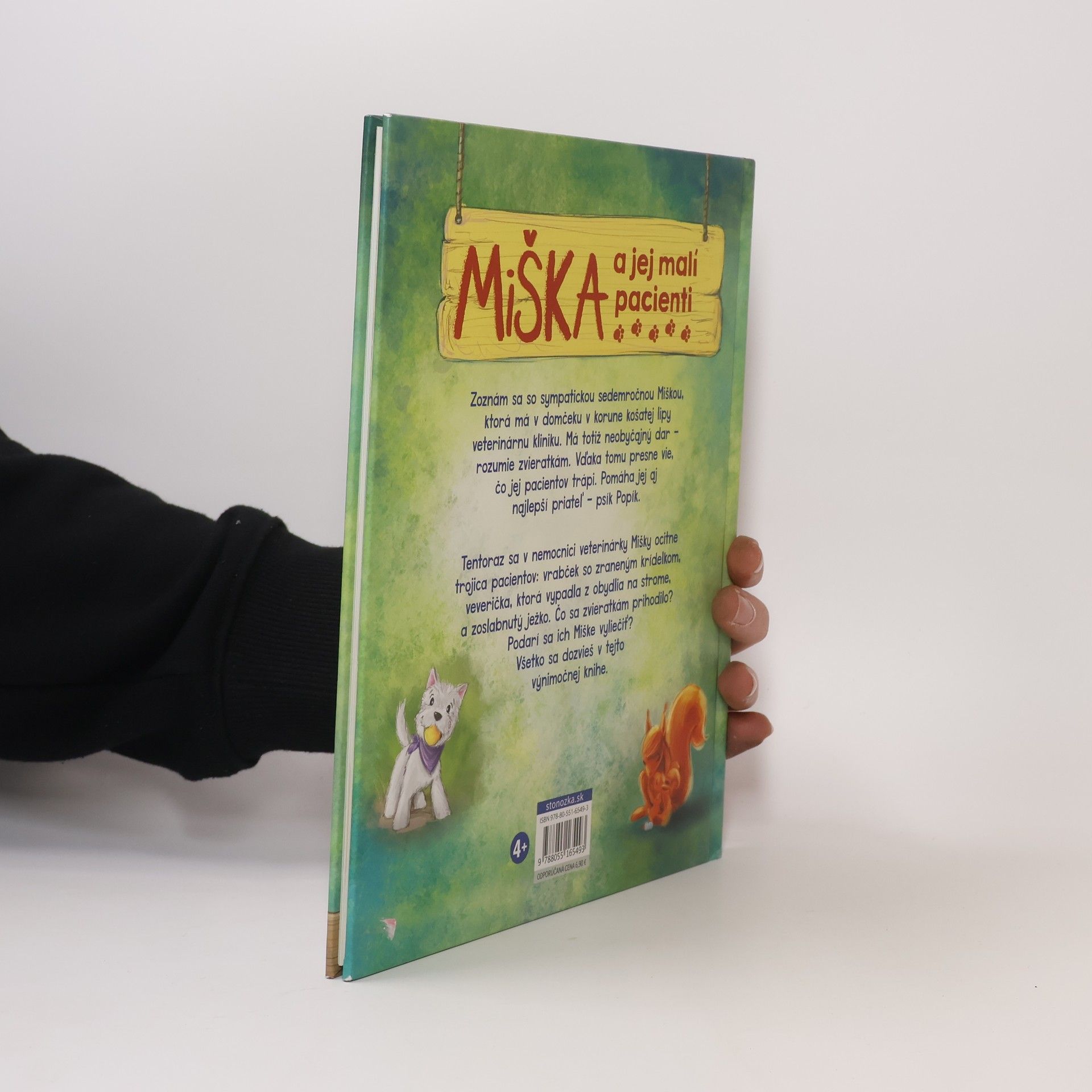 Zoznám sa so sympatickou sedemročnou Mišou, ktorá má v domčeku v korune košatej lipy veterinárnu kliniku. Má totiž neobyčajný dar – rozumie zvieratkám. Vďaka tomu presne vie, čo jej pacientov trápi. A navyše jej pomáha najlepší priateľ – psík Popík. Tentoraz sa v nemocnici veterinárky Miše ocitne trojica pacientov: vrabček so zraneným krídelkom, veverička, ktorá vypadla z obydlia na strome, a zoslabnutý ježko. Čo sa zvieratám prihodilo? Podarí sa ich Miši vyliečiť? Všetko sa dozvieš v tejto výnimočnej knihe.