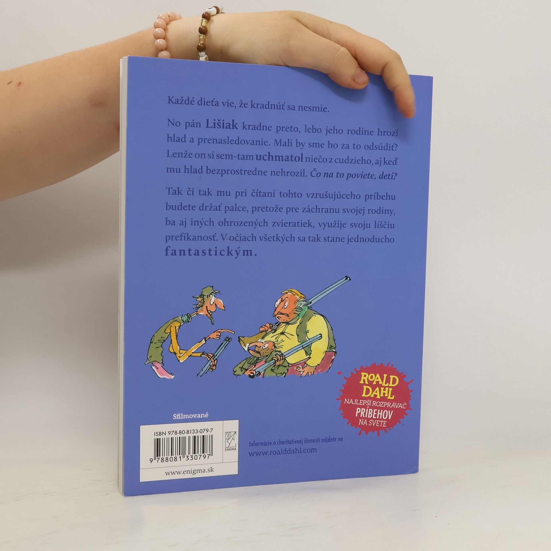 Každé dieťa vie, že kradnúť sa nesmie. No pán Lišiak kradne preto, lebo jeho rodine hrozí hlad a prenasledovanie. Mali by sme ho za to odsúdiť? Lenže on si sem-tam uchmatol niečo z cudzieho, aj keď mu hlad bezprostredne nehrozil... Tak či tak mu pri čítaní tohto vzrušujúceho príbehu budete držať palce, pretože pre záchranu svojej rodiny, ba aj iných ohrozených zvieratiek, využije svoju líščiu prefíkanosť. V očiach všetkých sa tak stane jednoducho fantastickým.