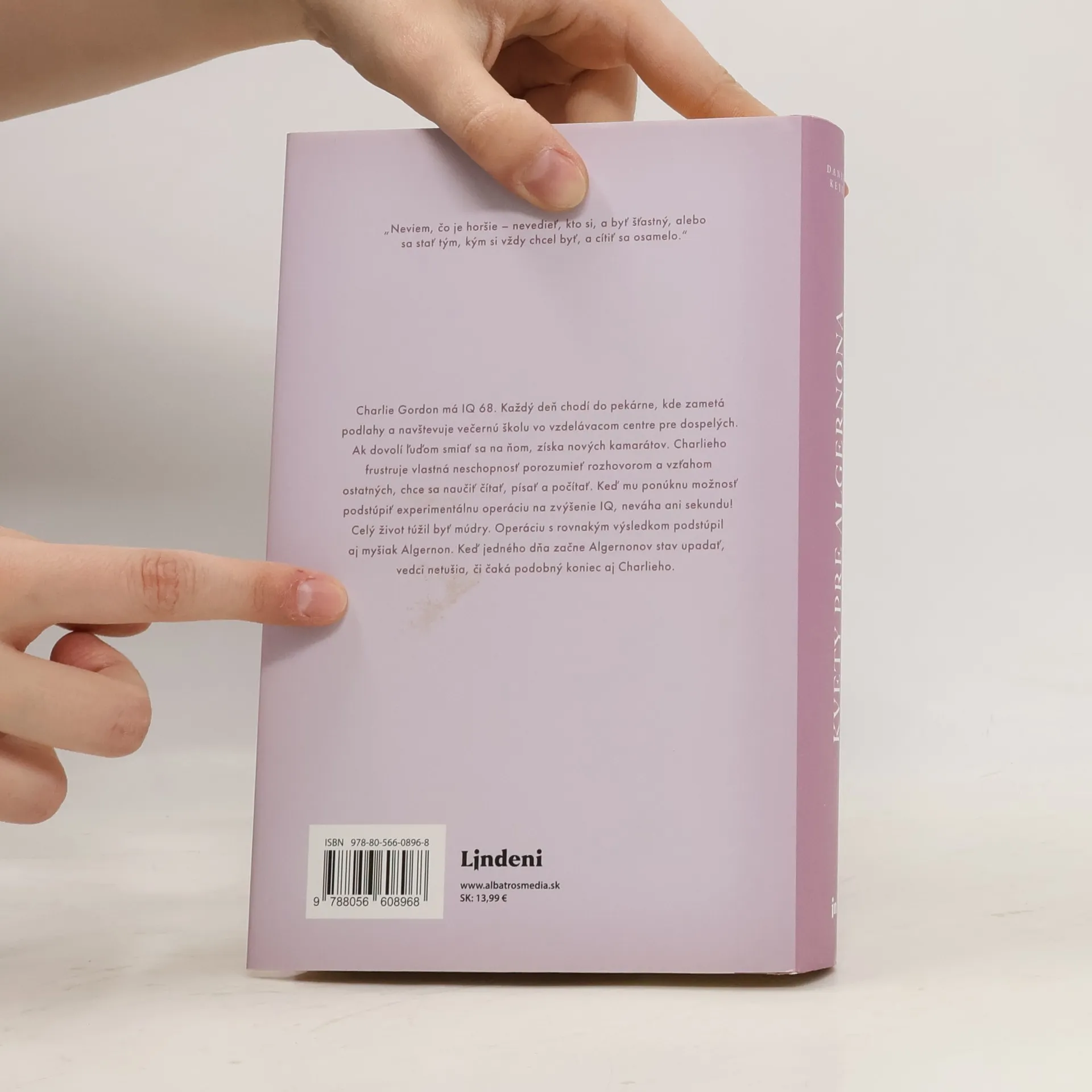 „Bojím sa. Nie života či smrti, ani ničoty, ale toho, že svoj čas premárnim, akoby som nikdy nebol.“ Charlie Gordon má IQ 68. Každý deň chodí do pekárne, kde zametá podlahy a navštevuje večernú školu vo vzdelávacom centre pre dospelých. Ak dovolí ľuďom smiať sa na ňom, získa nových kamarátov. Charlieho frustruje vlastná neschopnosť porozumieť rozhovorom a vzťahom ostatných, chce sa naučiť čítať, písať a počítať. Keď mu ponúknu možnosť podstúpiť experimentálnu operáciu na zvýšenie IQ, neváha ani sekundu! Celý život túžil bytť múdry. Rovnakú operáciu s rovnakým výsledkom podstúpil aj myšiak Algernon. Keď jedného dňa začne Algernonov stav upadať, vedci netušia, či čaká podobný koniec aj Charlieho. Kultový román druhej polovice 20. storočia, ktorý dnes právom považujeme za klasiku americkej literatúry.