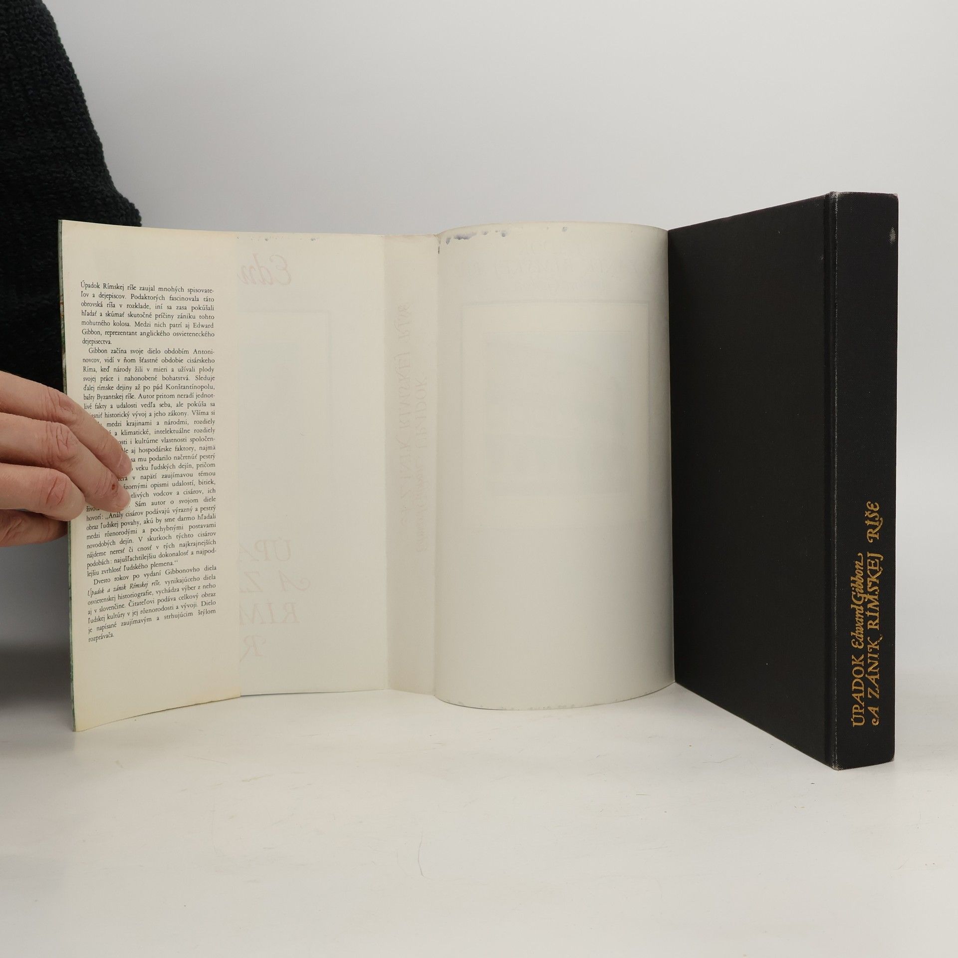 Nadmerné rozširovanie ríše, „jed z Judey“ a barbari sú podľa britského historika kľúčové faktory, ktoré spôsobili pád Rímskej ríše. Dielo vyniká erudíciou a ironickým štýlom, pričom autor píše: „Búrka a vlny sú vždy na strane lepších námorníkov.“ Nové slovenské vydanie obsahuje výber z jeho prác s doslovom, ktorý sleduje vývoj historického bádania a kontroverzie okolo jeho téz. Gibbon sa zaoberá geografickými, klimatickými, intelektuálnymi a kultúrnymi rozdielmi medzi národmi, pričom nezabúda na hospodárske faktory. Vytvára pestrý a živý obraz celého veku ľudských dejín, pričom udržiava čitateľa v napätí zaujímavými témami a názornými opismi udalostí, bitiek a charakterov vodcov a cisárov. Namiesto len chronologického usporiadania faktov sa autor snaží objasniť historický vývoj a jeho zákony. Vďaka tomuto dielu prestala byť história len zoznamom zločinov a nešťastí, začali sme skúmať aj jej príčiny a dôsledky. Thomas Carlyle označil Gibbona za most medzi starovekom a moderným. Bol brilantným štylistom, ktorého dielo stále oslovuje čitateľov aj po dvoch storočiach. Winstona Churchilla fascinovalo natolko, že o jeho knihách napísal, že ich „úplne hltal“ a mal z nich veľký pôžitok.