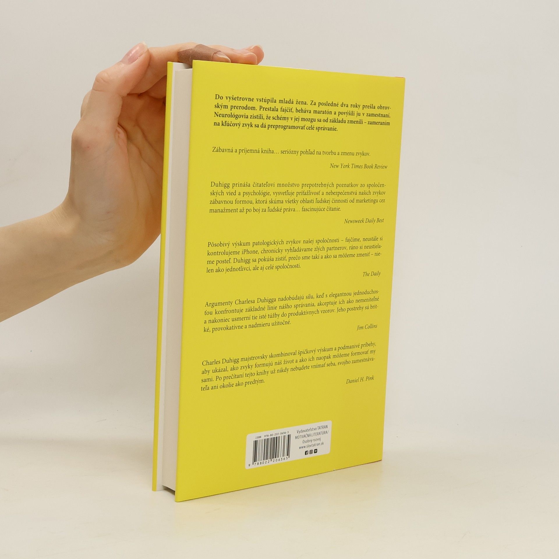 Prečo niektorí ľudia a firmy usilujú o zmenu celé roky, zatiaľ čo iní sa zmenia cez noc? Charles Duhigg skúma, ako zvyky vznikajú, prečo existujú a ako ich možno zmeniť. Ukazuje, ako môžu jednotlivci, podnikatelia a vlády ovplyvniť zmeny k lepšiemu alebo horšiemu, a odhaľuje, ako jednoducho sa dá manipulovať s ľuďmi. Pochopením fungovania zvykov môžeme zlepšiť nielen osobný a pracovný život, ale aj spoločnosť ako celok. Duhiggovo strhujúce rozprávanie, podložené najnovšími vedeckými poznatkami, ponúka nové chápanie ľudskej povahy a jej potenciálu na zmenu. Odborníci sa v posledných dvoch desaťročiach postupne dostali k poznaniu, ako zvyky fungujú a menia sa. Duhigg sa inšpiroval príbehom majora z Bagdadu, ktorý zmenou jedného zvyku zabránil vzburám. Zvyky, hoci sa na prvý pohľad zdajú bezvýznamné, majú významný dopad na naše zdravie, výkonnosť, úspech a šťastie. Autor osem rokov študoval výskumy v oblasti zvykov a podáva pútavé príbehy o transformáciách. Rozpráva o ženách, ktoré prešli zásadnými zmenami, a o firmách, ktoré sa z červených čísel dostali k obrovským ziskom zmenou jediného zvyku. Po prečítaní sa naučíme vnímať svoje zvyky novým spôsobom a formovať ich, čím ovplyvníme celý svoj život.