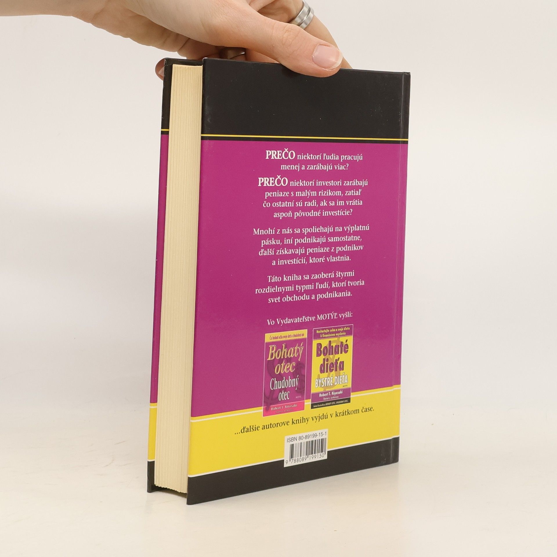 Úspešná kniha CASHFLOW KVADRANT od spoločnosti Rich Dad nám odhalí, ako môžu niektorí ľudia zarábať viac, hoci pracujú menej, prečo platia nižšie dane a že sa vzdelávajú preto, aby dosiahli finančnú slobodu. Položili ste si už niekedy nasledujúce otázky? Prečo niektorí investori zarábajú peniaze s minimálnym rizikom, zatiaľ čo iní stále nevedia prekročiť hranicu rentability a dosahovať zisk? Prečo väčšina zamestnancov strieda zamestnania, zatiaľ čo iní jednoducho odídu z jedného, aby následne vybudovali veľké spoločnosti a podnikateľské impériá? Čo pre mňa a moju rodinu znamená prechod z priemyselného veku do veku informácií? Ako môžem využiť túto zmenu vo svoj prospech a vytýčiť si cestu k finančnej slobode? Kniha CASHFLOW KVADRANT bola napísaná pre tých, ktorí sú pripravení... presunúť sa za hranice mimo istoty zamestnania a začať hľadať vlastný svet finančnej slobody, urobiť vo svojom živote významné zmeny, prevziať kontrolu nad svojou finančnou budúcnosťou a uchopiť ju do vlastných rúk,
