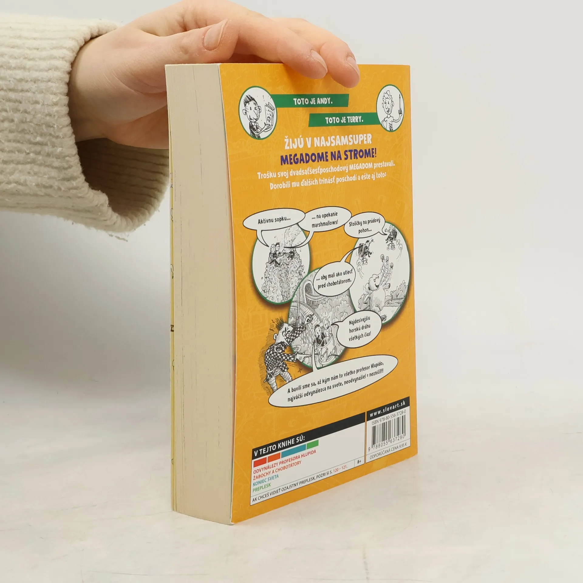 Megaúspešná séria Megadom na strome od známeho Andyho Griffithsa pobaví malých i veľkých. To by neboli Andy s Terrym, aby nepristavili ďalšie poschodia domu v strome. Takže už ich je 39. Prečo? No, samozrejme, pre zábavu. Pridali kadečo – diskotéku, kolotoč, čokoládový vodopád... Ak si však chcú všetky nové atrakcie užiť, na prácu im akosi nezostáva čas a pán Frňák sa zas dožaduje novej knihy. A tak im príde vhod Terryho najnovší vynález – stroj, ktorý sám napíše a nakreslí knihu podľa toho, ako ho naprogramujete. No čo ak sa umelá inteligencia vymkne svojmu tvorcovi spod kontroly? Netušíte? Tak si to prečítajte!