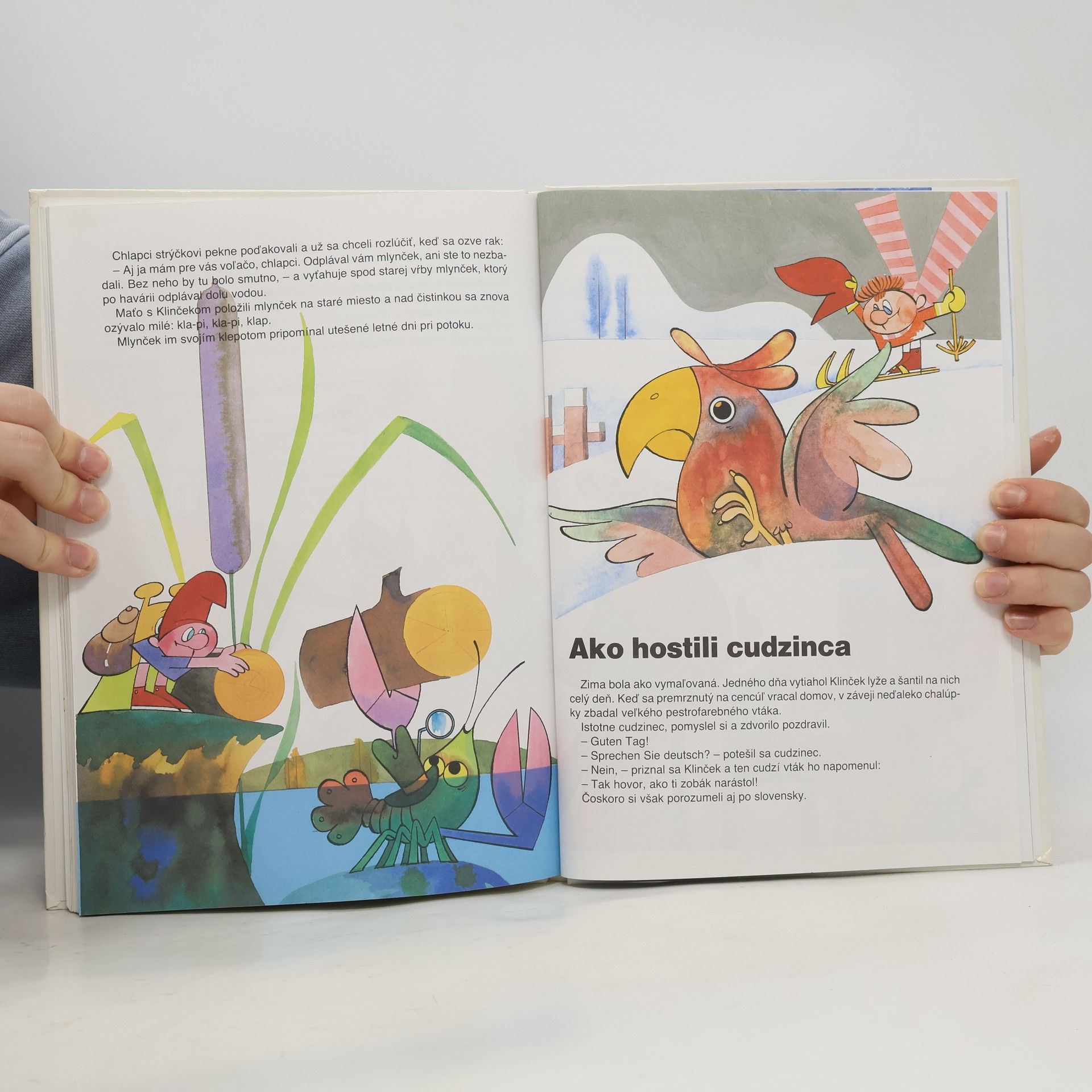 Krásne ilustrovaná knižka o dvoch kamarátoch škriatkovi a slimákovi, ktorí sú známi vďaka televíznym rozprávkam. V jednotlivých príbehoch zažívajú neustále veselé, ale aj smutné dobrodružstvá so svojimi kamarátmi v lesíku. Táto knižka rozpráva niektoré z nich a ponúka aj jednoduché návody na kreslenie a hry, ktoré sa môžete zahrať so svojimi novými kamarátmi, Maťkom a Klinčekom