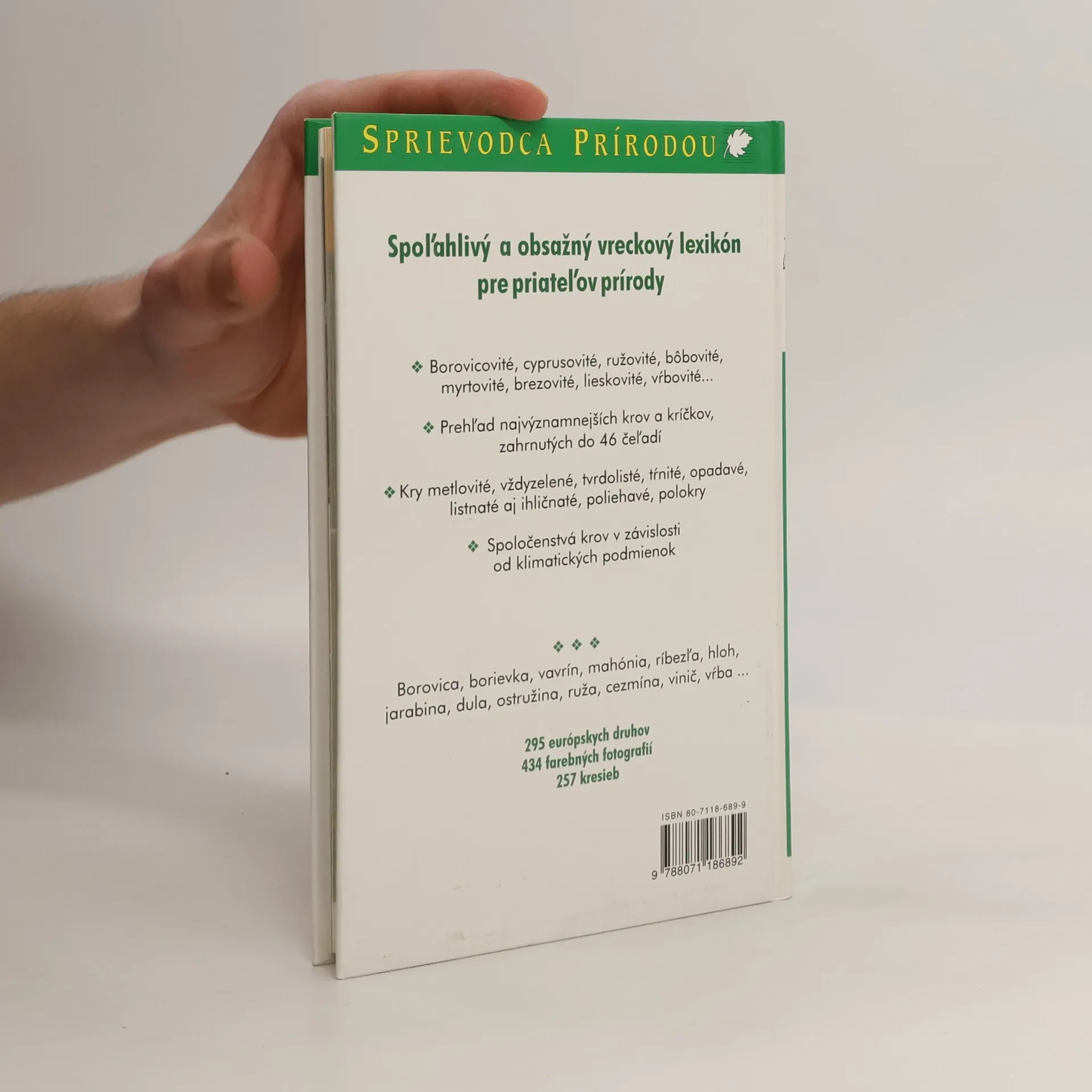 Spoľahlivý a obsažný vreckový lexikón pre priateľov prírody. Borovicové, cyprusovité, ružovité, bôbovité, myrtovité, brezovité, lieskovité, vŕbovité kry. Prehľad najvýznamnejších krov a kríčkov, zahrnutých do 46 čeľadí. Kry metlovité, vždyzelené, tvrdolisté, tŕnité, opadavé, listnaté aj ihličnaté, poliehavé, polokry. Spoločenstvá krov v závislosti od klimatických podmienok. Borovica, borievka, vavrín, mahónia, ríbezľa, hloh, jarabina, dula, ostružina, ruža, cezmína, vinič, vŕba. 295 európskych druhov, 434 farebných fotografií, 257 kresieb.