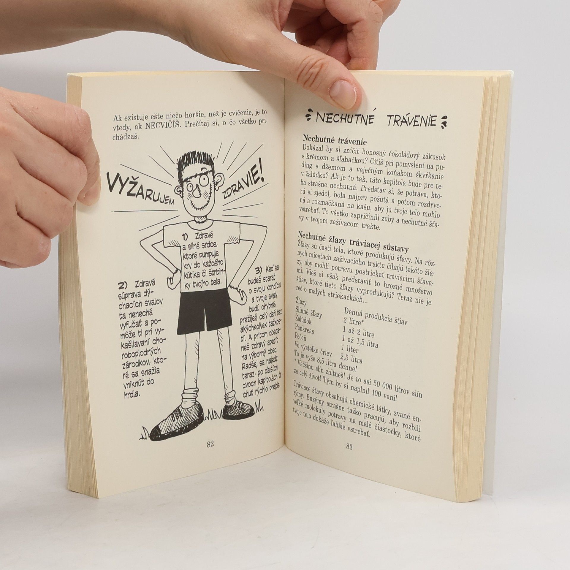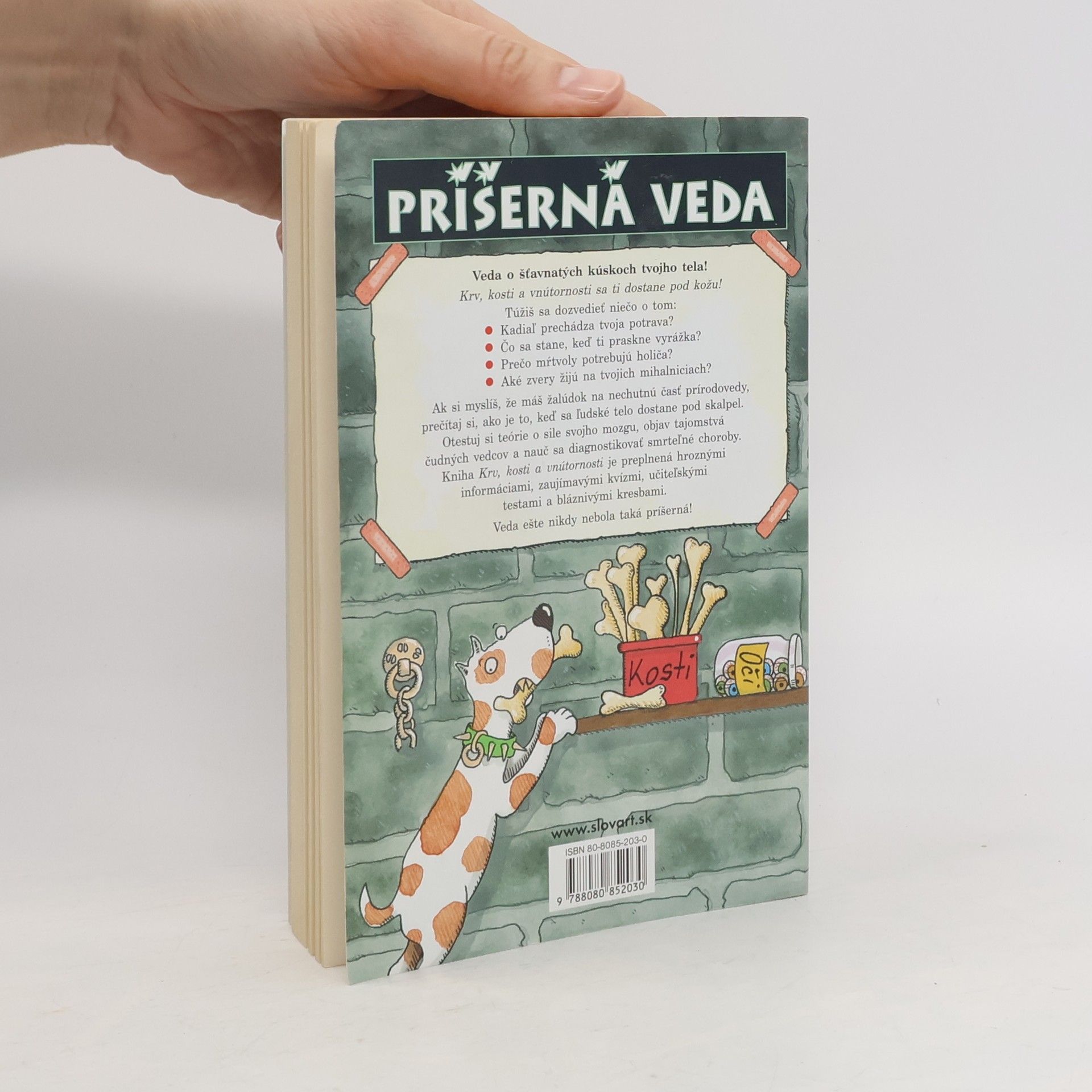 Kniha s podtitulom Veda o šťavnatých kúskoch tvojho tela ťa prevedie po miestach, cez ktoré prechádza tvoja potrava, dozvieš sa prečo mŕtvoly potrebujú holiča a aké zvery žijú na tvojich mihalniciach… Otestuješ si teórie o sile svojho mozgu, objavíš tajomstvá čudných vedcov a naučíš sa diagnostikovať smrteľné choroby. Kniha je preplnená hroznými informáciami, zaujímavými kvízmi, učiteľskými testami a bláznivými kresbami.