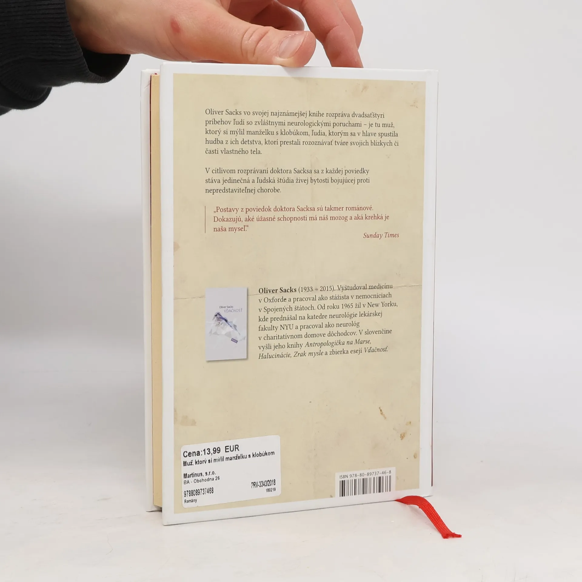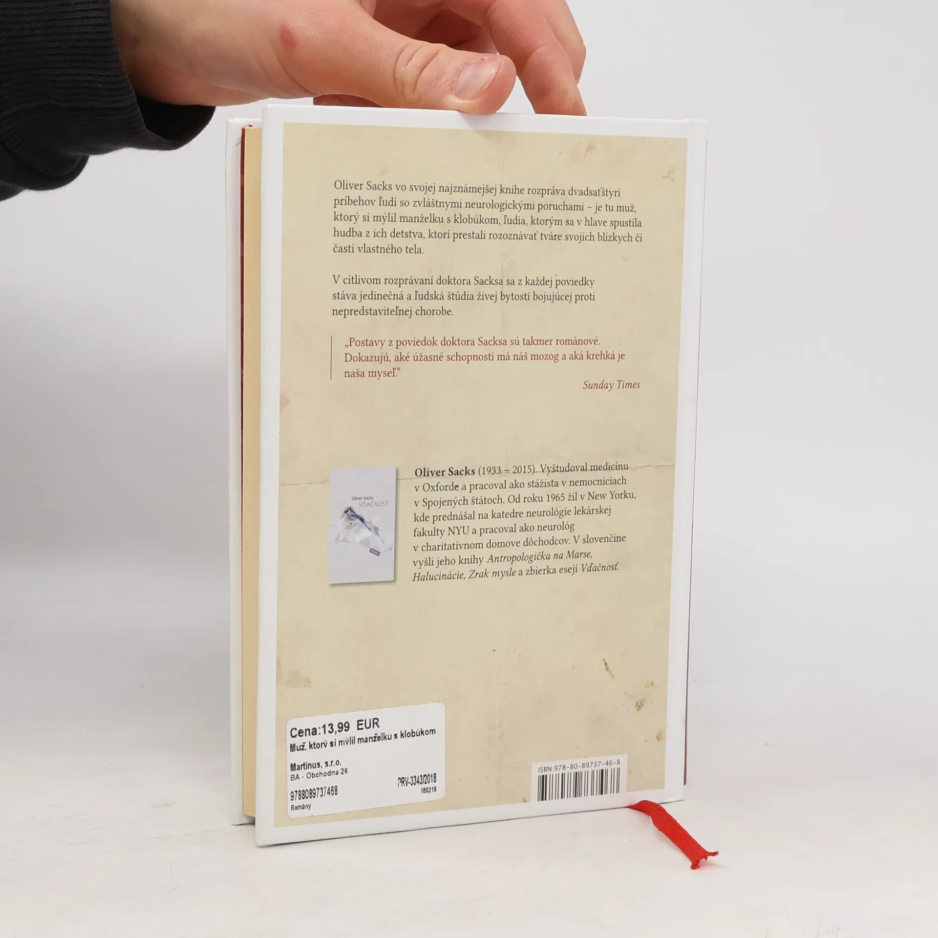 There are currently of book Muž, ktorý si mýlil manželku s klobúkom (2017) in stock.