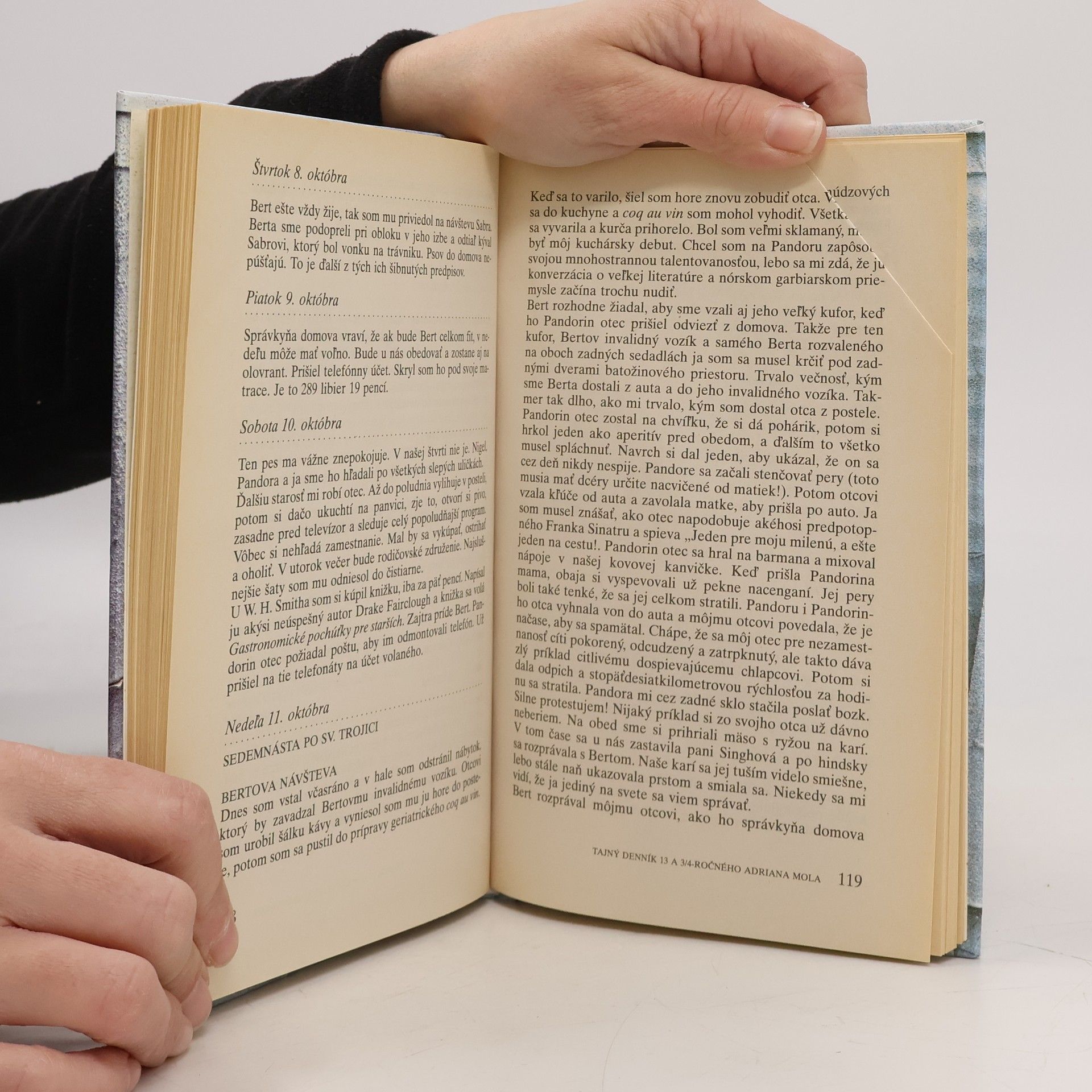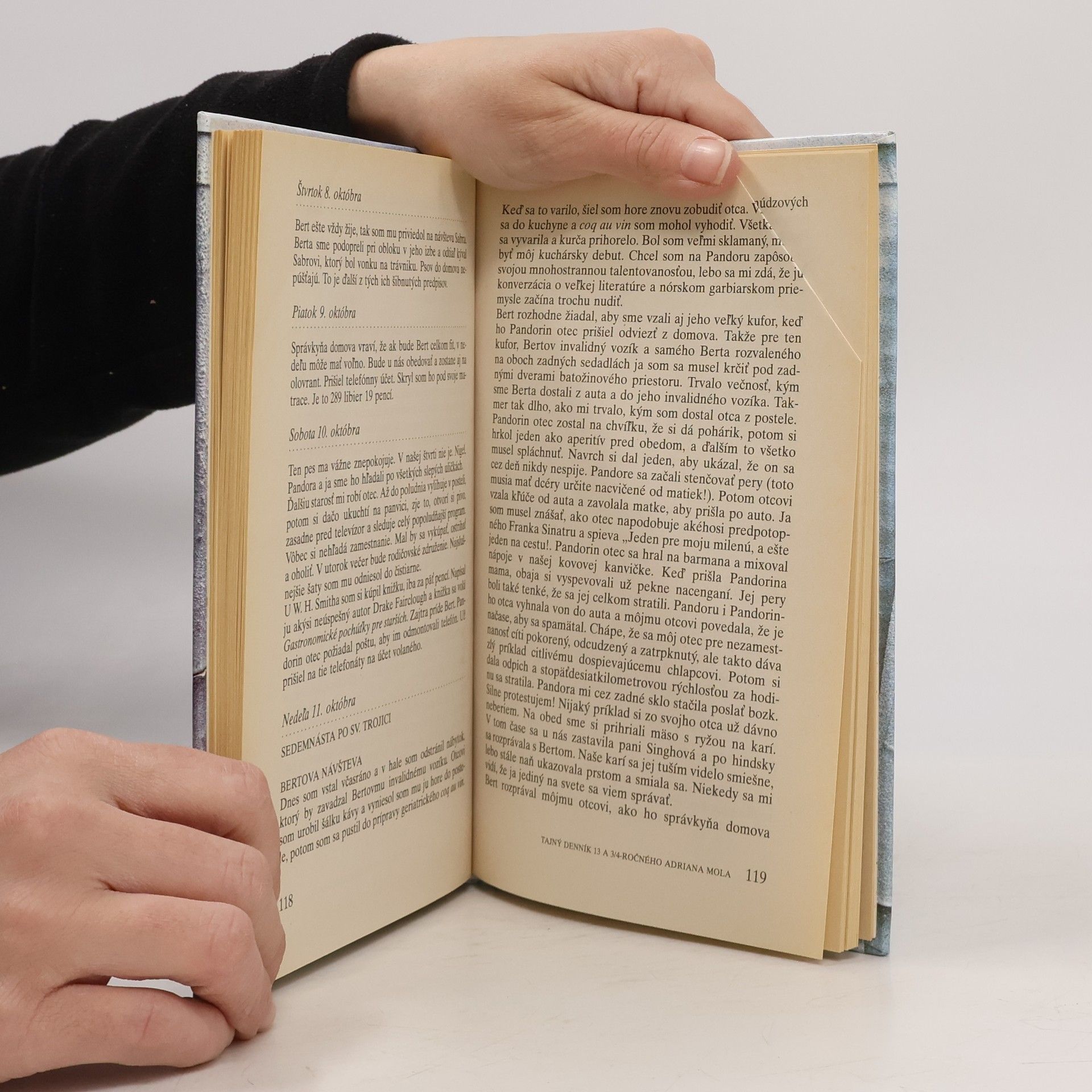Prvá časť denníkových záznamov hlavného hrdinu. Adrian čelí problémom každodenného života, prežíva svoju prvú lásku, bojuje o naplnenie svojich literárnych ambícií, vyrovnáva sa s neusporiadaným rodinným životom svojich rodičov.