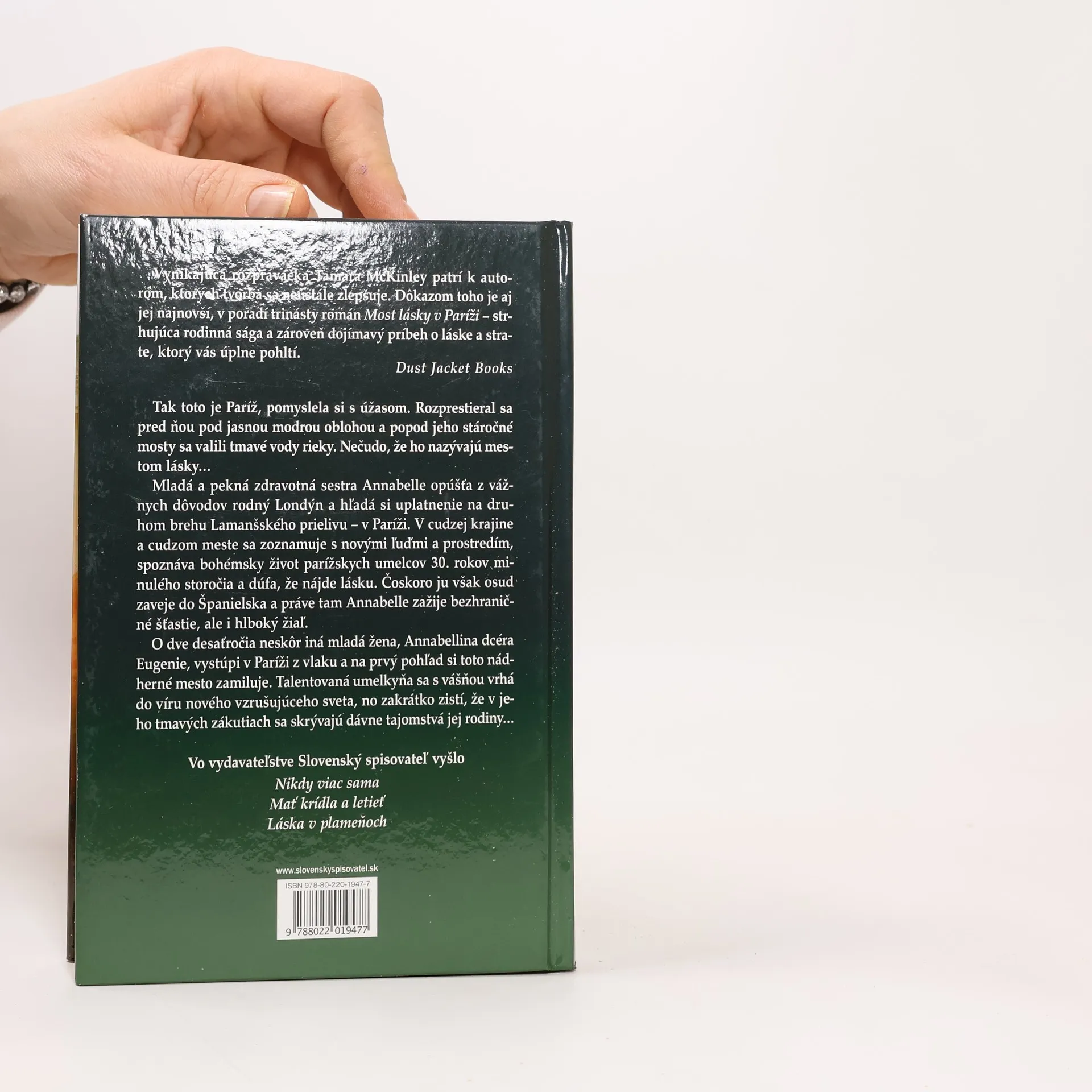 Najnovší, trinásty román autorky svetových bestsellerov. Mladá a pekná zdravotná sestra Annabelle opúšťa rodný Londýn a hľadá si uplatnenie na druhom brehu Kanála La Manche – v Paríži. V cudzej krajine a cudzom meste sa zoznamuje s novými ľuďmi a prostredím, spoznáva bohémsky život parížskych umelcov 30. rokov minulého storočia a dúfa, že nájde lásku. Čoskoro ju však osud zaveje do Španielska a tam Annabelle zažije bezhraničné šťastie, ale i hlboký žiaľ. O dve desaťročia neskôr iná mladá žena, Annabellina dcéra Eugenie, vystúpi v Paríži z vlaku a na prvý pohľad si toto nádherné mesto zamiluje. Talentovaná umelkyňa sa s vášňou vrhá do víru nového vzrušujúceho sveta, no zakrátko zistí, že v jeho tmavých zákutiach sa skrývajú dávne tajomstvá jej rodiny...