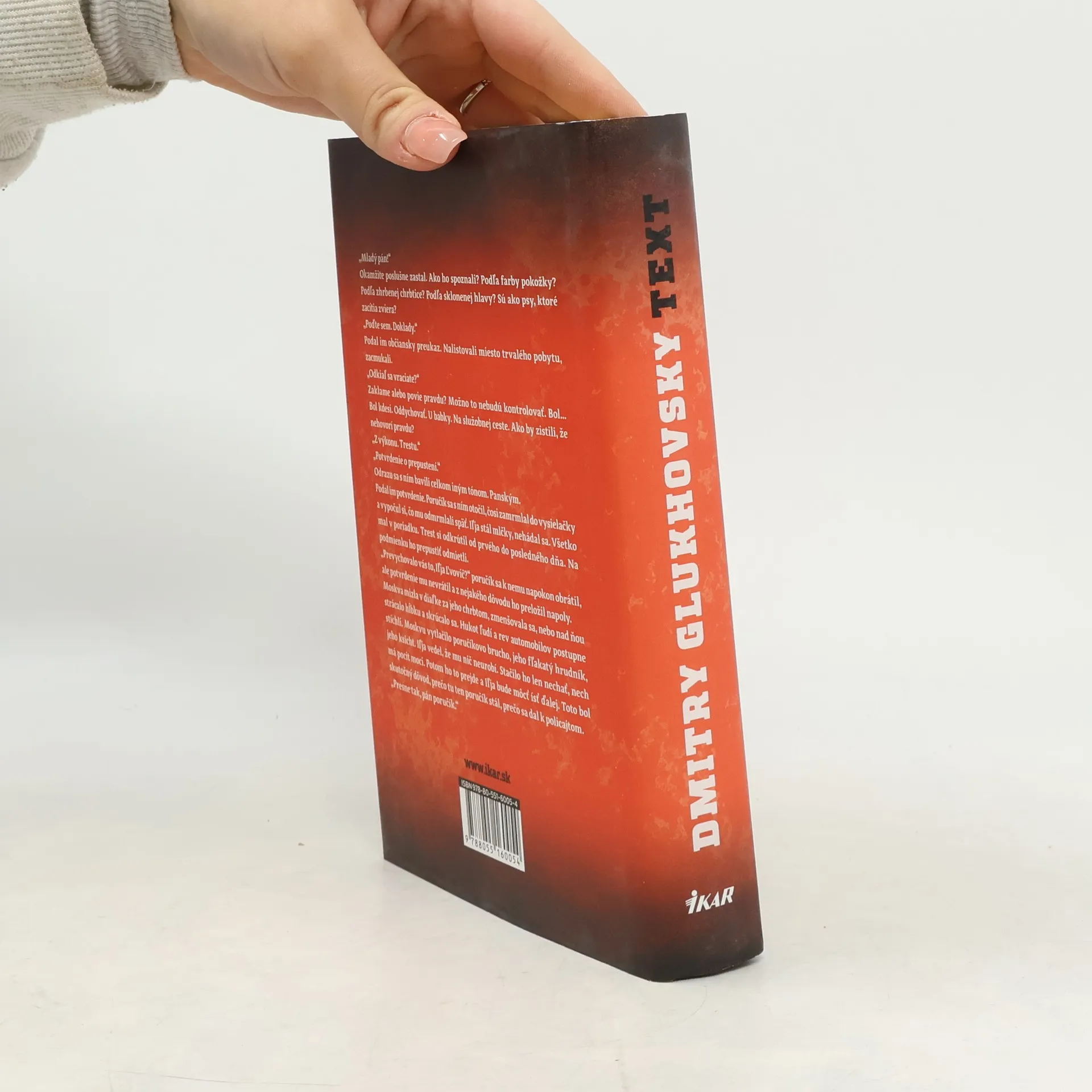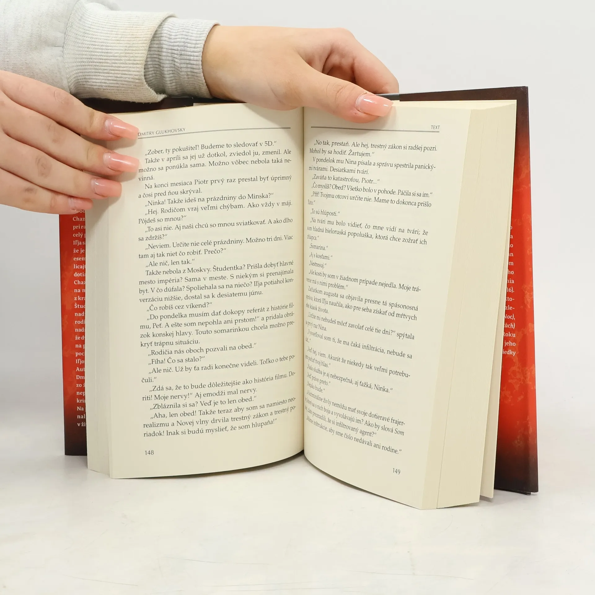 Jedna vražda, jeden smartfón, niekoľko dní požičaného života. Dvadsaťsedemročný Iľja sa po siedmich rokoch strávených vo väzení vracia domov. Odlúčenie od okolia mu celý život prevrátilo naruby. Odcudzil sa kamarátom, opustila ho priateľka a pár dní pred príchodom prišiel dokonca o matku. Hnaný pocitom nespravodlivosti a falošného obvinenia sa odhodlá až na vraždu policajta Piotra Chazina, ktorý ho dostal za mreže, keď mu pri razii podhodil balíček s drogami. A tu sa celý príbeh začína. Iľja sa zmocní jeho smartfónu a predstiera, že je niekto celkom iný. Cez mesendžery, esemesky a maily udržiava mŕtveho policajta pri živote, len aby sa mu podarilo dotiahnuť drogový obchod, ktorý Piotr Chazin rozbehol. Potrebuje totiž peniaze na mamin pohreb a na to, aby sa dostal z krajiny. Študuje Piotrov spôsob komunikácie, nadviaže kontakt s jeho priateľkou, rodičmi, vyhýbavo odpovedá na otázky nadriadených. Čoskoro sa však pristihne, že dvojrozmerné postavy zo správ sa menia na plastické osobnosti, ktoré majú svoje pocity, problémy a túžby. Hranice medzi Iľjom a Piotrom sa postupne stierajú. Autor postapokalyptickej série Metro Dmitry Glukhovsky tentoraz rezignoval zo žánru sci fi a presunul sa do mrazivej, neprikrášlenej súčasnosti Ruska plnej kriminality, korupcie a nenaplnených snov. Na pozadí tragédie jedného života sa črtá naliehavá otázka o úlohe technológií v živote človeka.