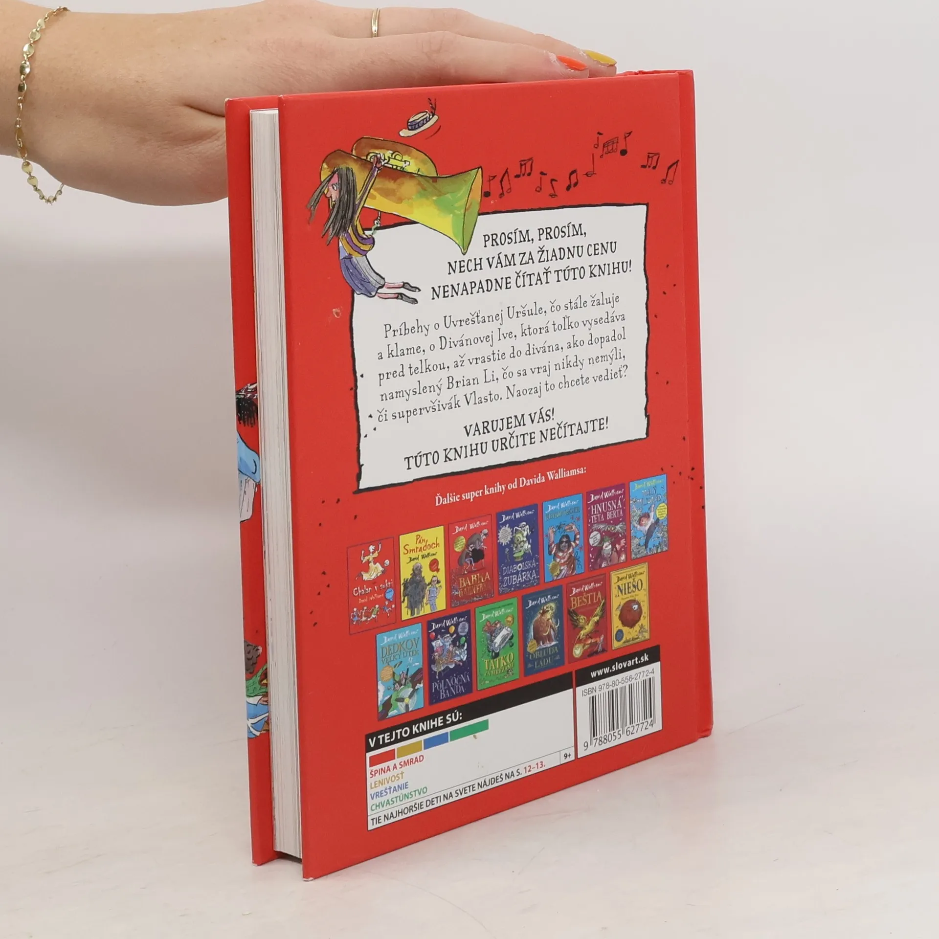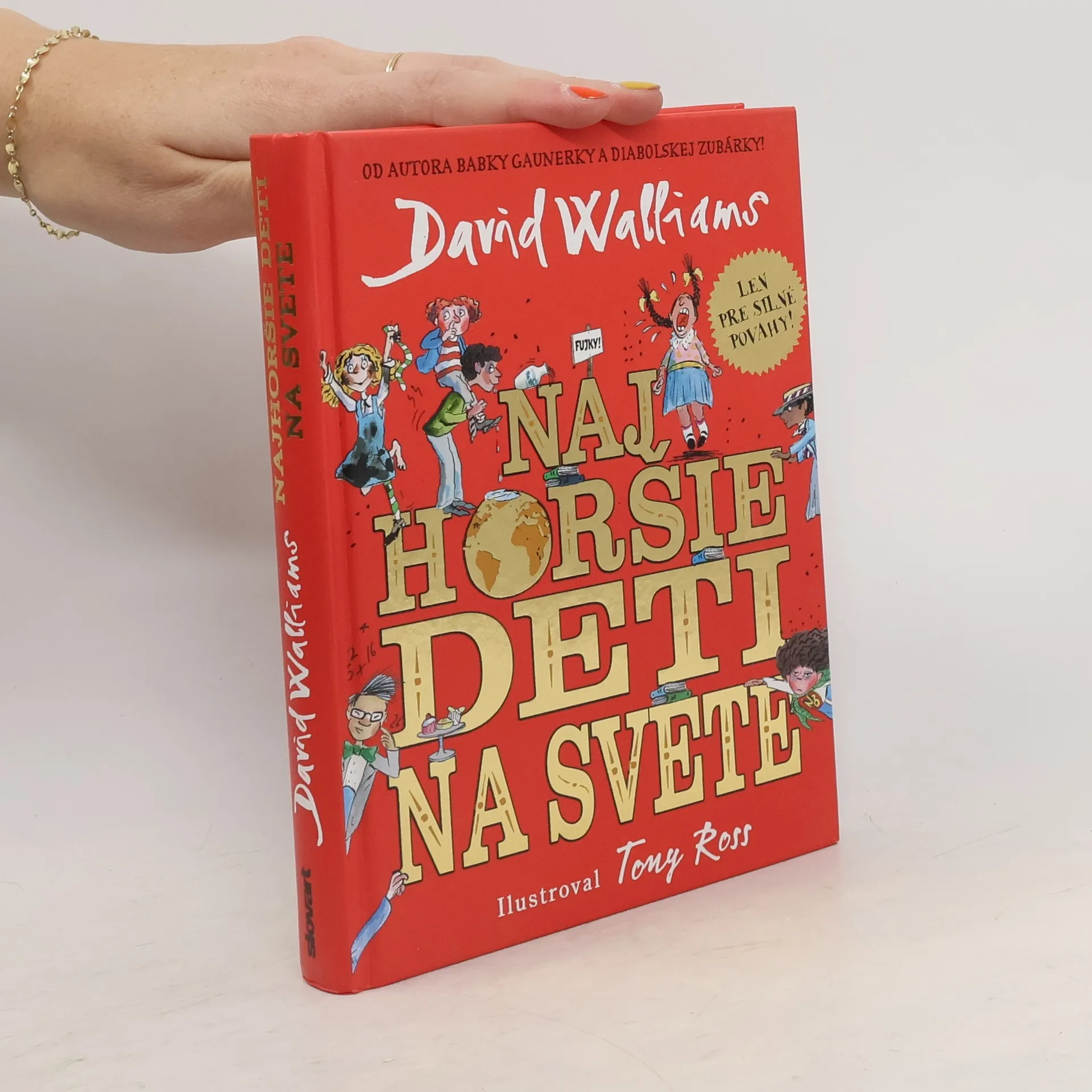 Ďalšia kniha od svetoznámeho britského komika a autora detských kníh Davida Walliamsa má na rozdiel od tých predošlých farebné ilustrácie a tvoria ju poviedky. Ako inak by mohla do detailov opísať tie najhoršie, ale naozaj naj, naj, najhoršie deti na svete. Ste pripravení? Máte dosť odvahy? Zvládnete stretnutie s desiatimi najhoršími deťmi na svete? Päť malých naničhodníkov a päť darebáčok. Divánová Iva – pozerá telku tak často, až prirastie k divánu. Slintoš Samo – slintá toľko, až sa na školskom výlete dostane do poriadnej kaše. Uvrešťaná Uršuľa je zas dievčisko, ktoré neustále fňuká a vymýšľa si. A, samozrejme, nesmieme zabudnúť aj na najobľúbenejšiu postavu, trafikanta Raja. Čítajte a inšpirujte sa! Komu sa kniha môže páčiť: Malým srandistom a lapajom, ktorí sa chcú nasmiať do popuku na tých najhorších deckách na celom svete.