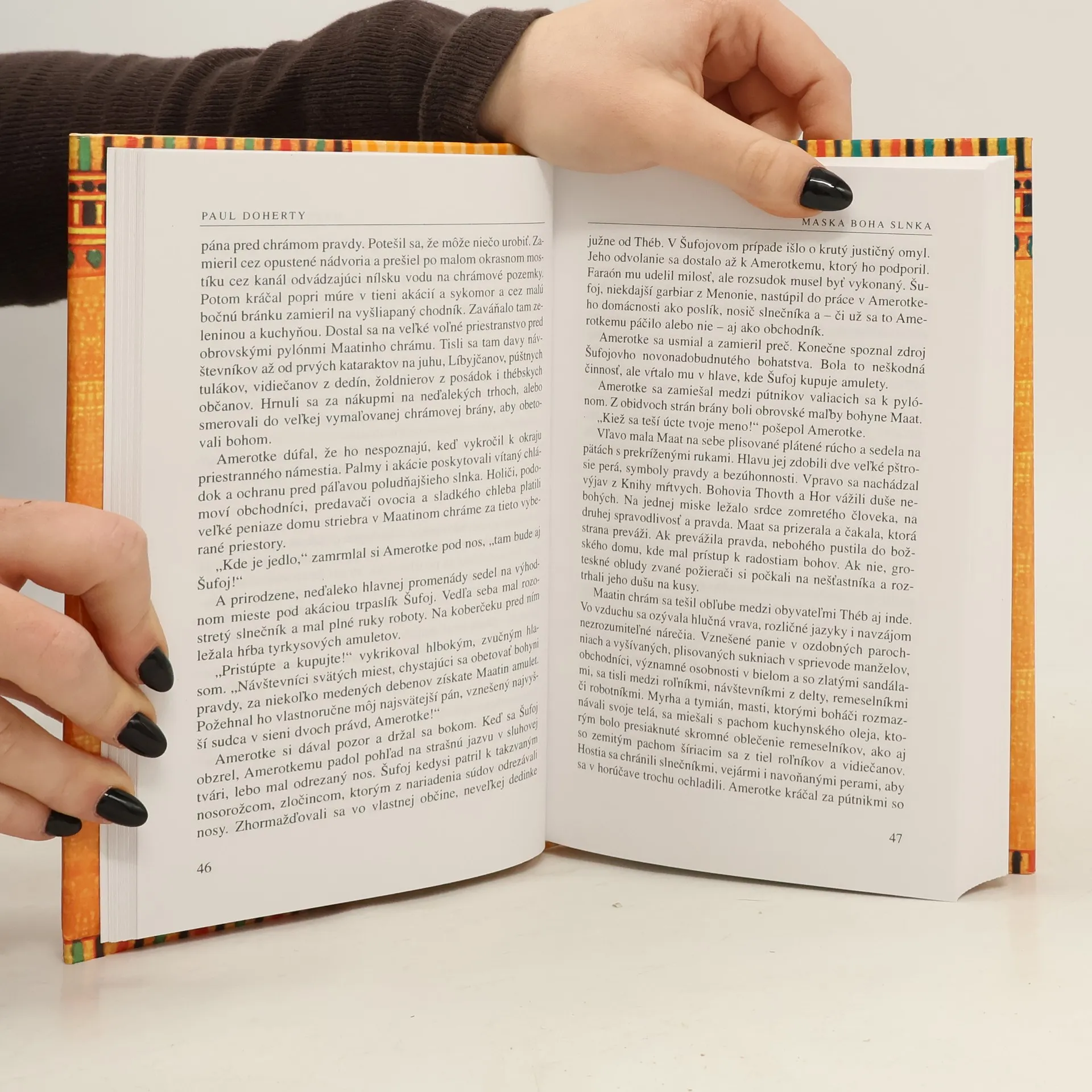 Paul Doherty je uznávaný historik, ktorý brilantne využíva svoje vedomosti pri písaní napínavých detektívnych príbehov, odohrávajúcich sa na pozadí skutočných historických udalostí. Aj v tomto románe dokonale uplatnil svoje oslnivé vedomosti o Egypte, a tak vznikol strhujúci príbeh, v ktorom sa pôsobivo prelína fikcia so skutočnosťou. Dej neobyčajne dramatického historického románu s detektívnou zápletkou sa odohráva v období panovania faraóna Thutmosa II. a jeho manželky kráľovnej Hatšepsovet. V zjednotenom Egypte nastalo obdobie nového a veľkolepého rozmachu, čo iba zosilnilo boj o moc a získanie popredných miest na kráľovskom dvore. Zrazu nečakane a záhadne zomiera Thutmose II. a sudca Amerotke sa ujíma vyšetrovania, čo skutočne bolo príčinou náhlej panovníkovej smrti. Priebeh vyšetrovania komplikuje množstvo prekážok, tajomných úkazov a čudných zmiznutí. Sprisahanci nešetria silami ani prostriedkami, aby vyšetrovateľa zviedli na falošnú stopu. Vyriešenie záhady faraónovej smrti bude prekvapením pre čitateľa.