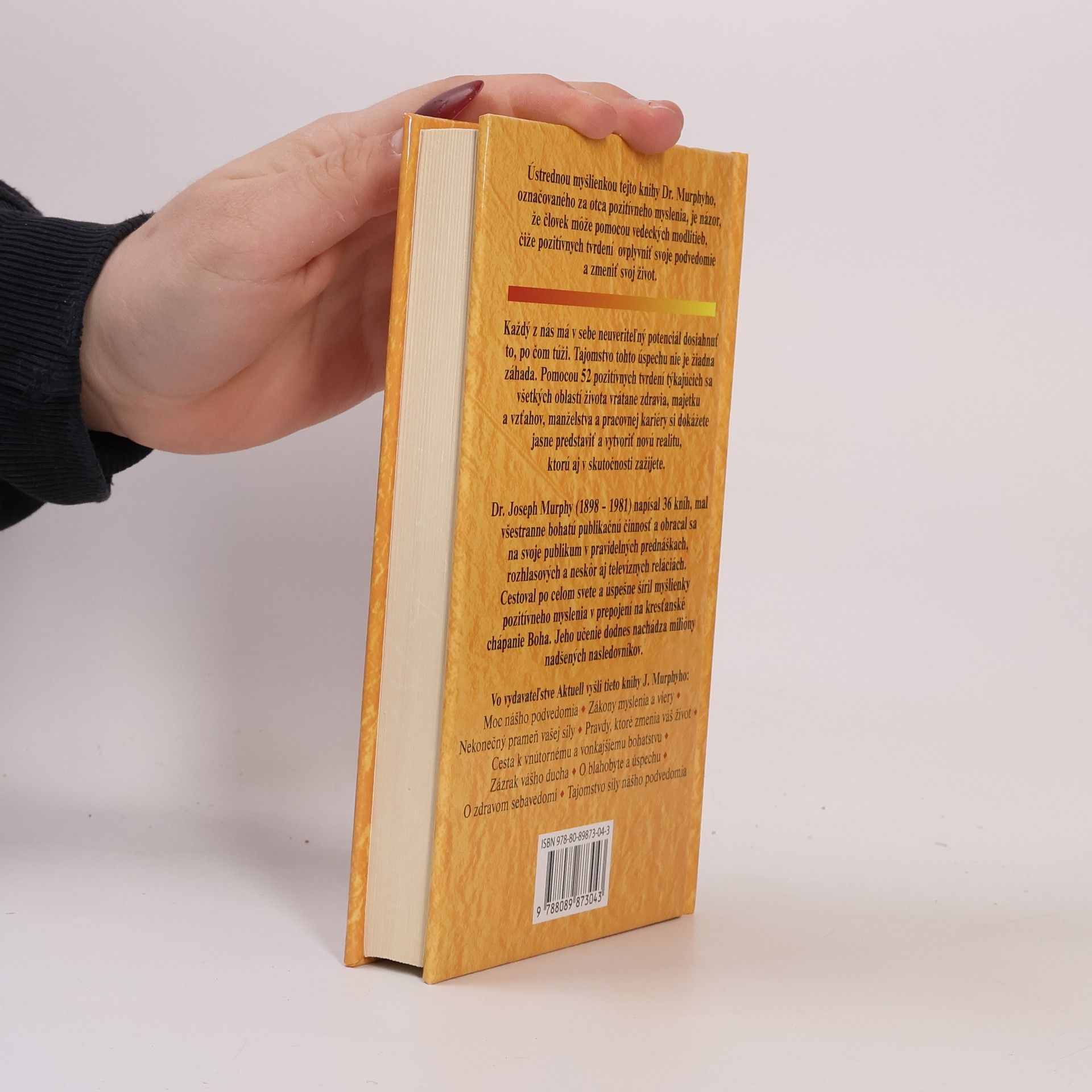 Ústřední myšlenkou této knihy doktora Murphy ho, označovaného za otce pozitivního myšlení, je názor, že člověk může pomocí vědeckých modliteb, tedy pozitivních ujištění, ovlivnit podvědomí a změnit svůj život. Každý z nás má v sobě obrovský potenciál dosáhnout toho, po čem touží. Tajemství tohoto úspěchu není žádná záhada. Pomocí 52 pozitivních ujištění týkajících se všech oblastí života včetně zdraví, majetku, vztahů, manželství nebo pracovní kariéry si dokážete jasně představit a vytvořit novou realitu, kterou potom skutečně prožijete. Dr. Joseph Murphy je autorem 36 knih, měl všestranně bohatou publikační činnost a obracel se na svoje publikum při pravidelných přednáškách, v rozhlasových a později i televizních relacích. Cestoval po celém světě a úspěšně šířil myšlenky pozitivního myšlení v propojení s křesťanským chápáním Boha. Jeho učení dodnes nachází miliony nadšených následovníků.