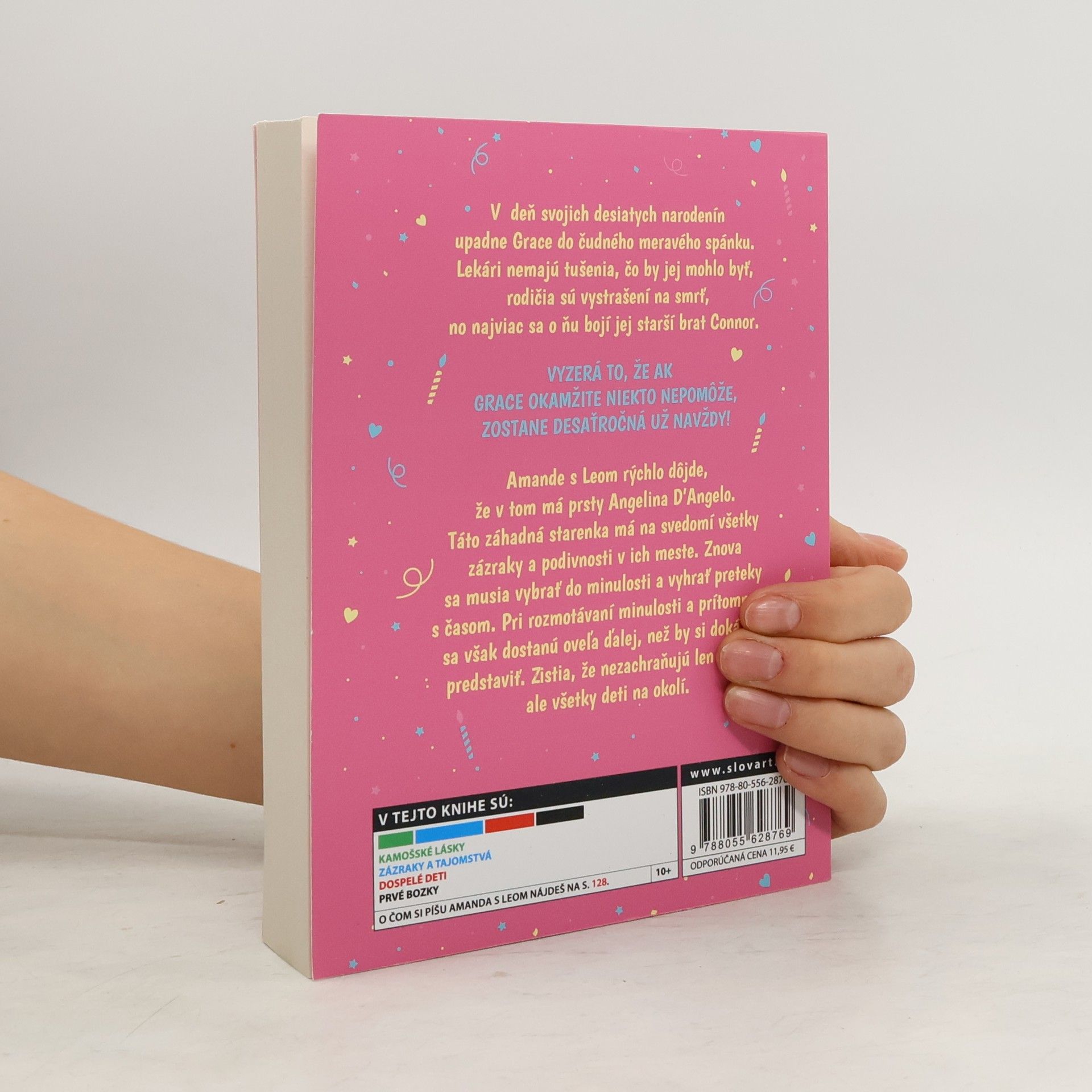 Kniha Len nie desaťročná! je voľné pokračovanie kníh Zakliate jedenáste narodeniny, Konečne dvanásťročná a Za trest trinásťročná. Grace upadla v deň svojich desiatych narodenín do čudného meravého stavu a Amanda s Leom si rýchlo uvedomia, že v tom má prsty Angelina D'Angelo - záhadná stará pani, ktorá má na svedomí všetky zázraky v ich mestečku na konci sveta. No Angelina nemá vo zvyku hovoriť ľuďom celú pravdu, a tak sa im len vďaka kamarátom - vrátane Rory a Tary - podarí poskladať celý príbeh. Musia sa vybrať do minulosti a vyhrať preteky s časom. Pri rozmotávaní záhad sa však dostanú oveľa ďalej, než by si dokázali predstaviť. Zistia totiž, že nezachraňujú len Grace. V knihách Wendy Mass je možné všetko a náhody neexistujú. No pamätaj... keď raz vstúpiš, možno už nebudeš chcieť odísť. Koho môže kniha zaujať: Dievčatá, ktoré vedia, aké to je, mať kamarátov, ktorí ťa zachránia, aj keď si začarovaná a musia kvôli tebe cestovať časom.