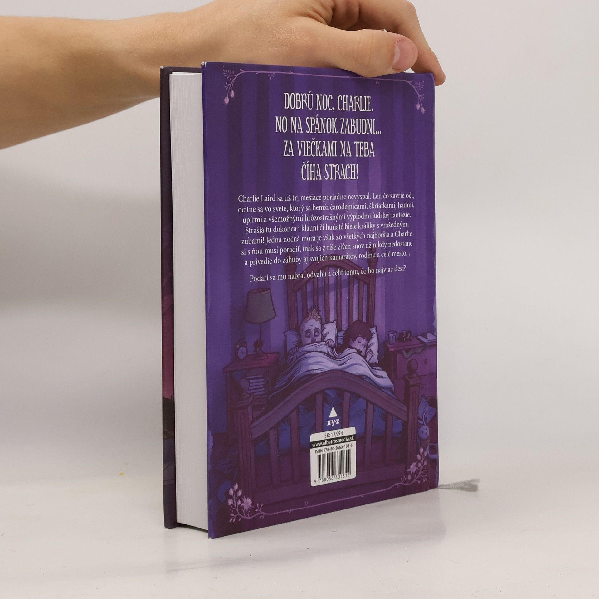 Už nikdy nebudete spať ako predtým! Charlie Laird sa už tri mesiace poriadne nevyspal. Len čo zavrie oči, ocitne sa vo svete, ktorý sa hemží čarodejnicami, škriatkami, hadmi, upírmi a všemožnými hrôzostrašnými výplodmi ľudskej fantázie. Strašia tu dokonca i klauni či huňaté biele králiky s vražednými zubami! Jedna nočná mora je však zo všetkých najhoršia a Charlie si s ňou musí poradiť, inak sa z ríše zlých snov už nikdy nedostane a privedie do záhuby aj svojich kamarátov, rodinu a celé mesto... Podarí sa mu nabrať odvahu a čeliť tomu, čo ho najviac desí?
