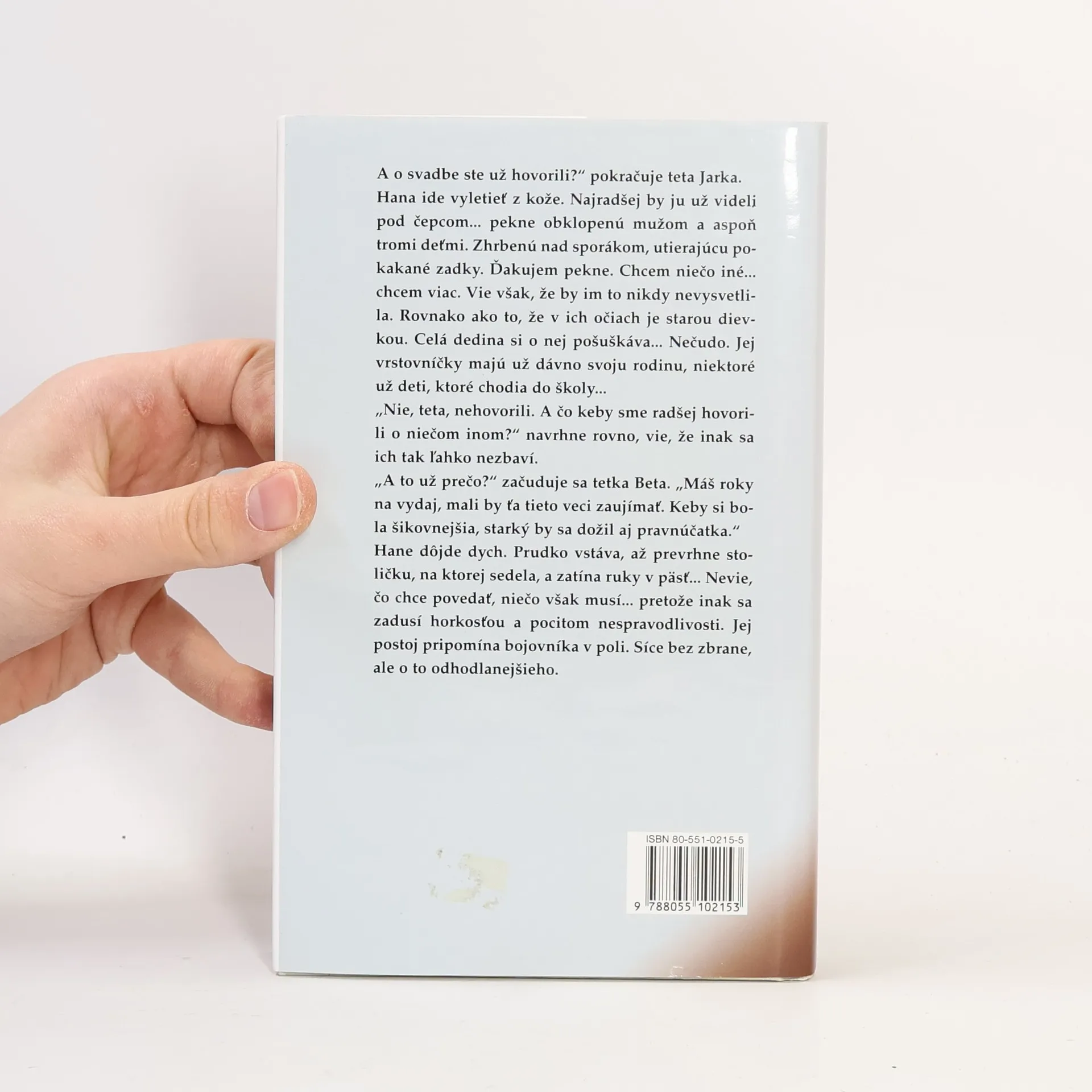 V tomto románe autorka zachytáva svet troch generácií žien, svet bez mužov... a predsa s nimi. Hlavná hrdinka Hana, dvadsaťsedemročná mladá žena, často sedáva v svojej izbe s okienkom do záhrady a sníva o tom, že jej život bude celkom iný ako matkin a babkin. Túži žiť v meste, vydať sa za bohatého muža a je odhodlaná urobiť všetko preto, aby sa jej to podarilo. No zaslepená vlastnými predstavami i strachom, že jej to nevyjde, robí množstvo chýb, ktoré sa naprávajú len ťažko... Táňa Keleová-Vasilková - Narodila sa roku 1964 v Chomutove. Od svojich štyroch rokoch žije v Bratislave. Ukončila štúdium žurnalistiky na Filozofickej fakulte UK v Bratislave. Má tri deti a žije so svojou rodinou v Devínskej Novej Vsi. Doteraz publikovala romány: Cena za voľnosť (1997), Manželky (1997), Túžby (1999) a Mama pre Veroniku (2000), ktorý vyšiel aj v českom preklade.